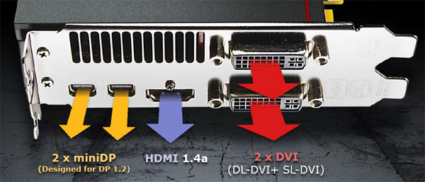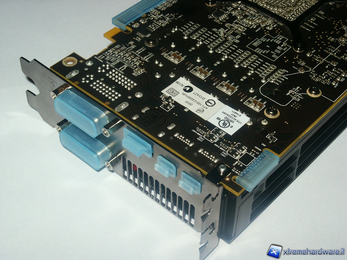 Troviamo inoltre due connettori di alimentazione supplementari di tipo PCIe 6pin, necessari per fornire alla scheda tutta l’energia necessaria. Ricordiamo che la HD6870 prevede un TDP di 151W.