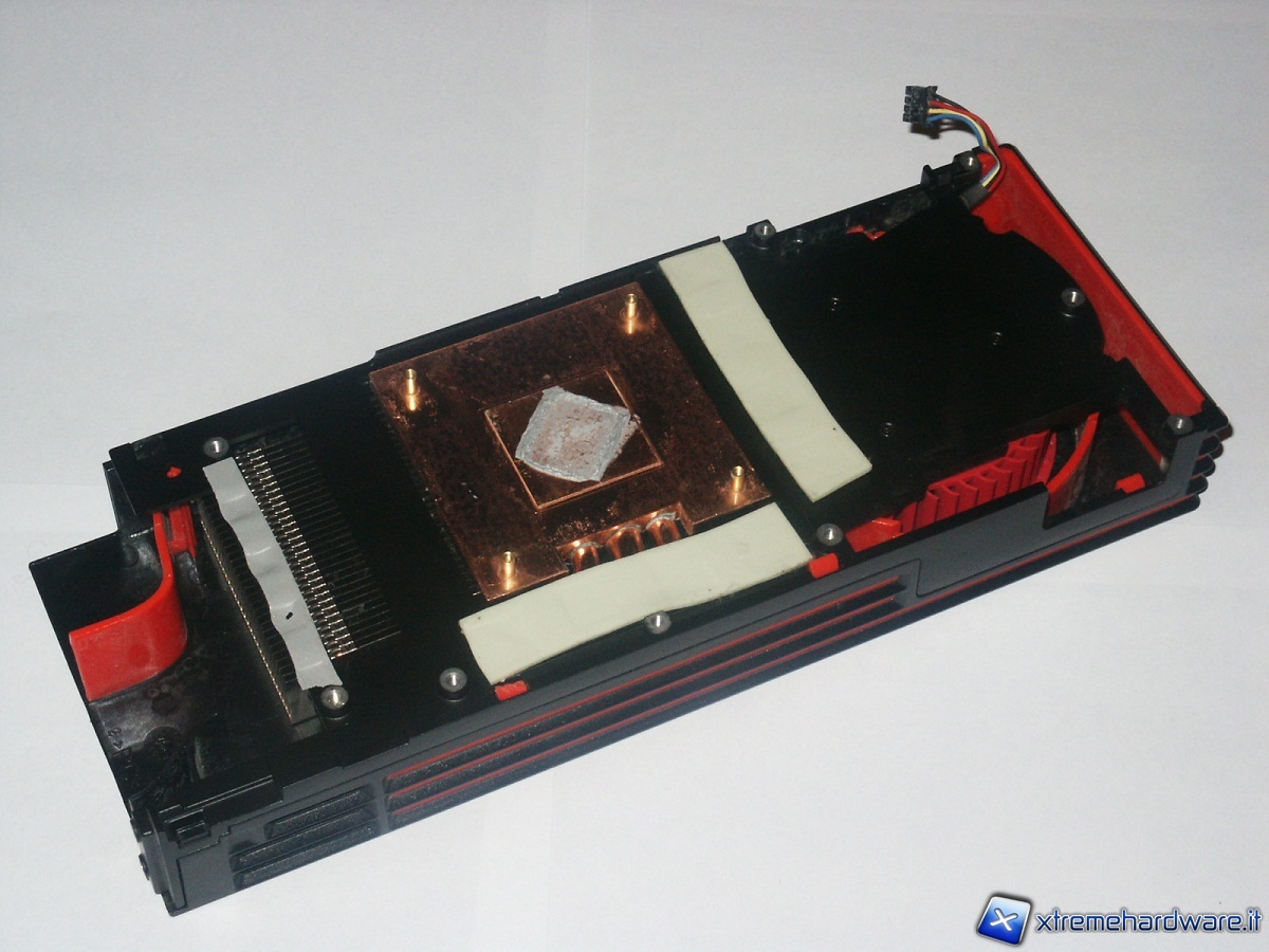Il dissipatore impiegato per la GPU ha un particolare design, che permette di convogliare l’aria spostata dalla ventola direttamente sul corpo dissipante a contatto col processore, e di espellerla in maniera efficiente dall’altro lato, grazie alla griglia presente nel bracket posteriore.