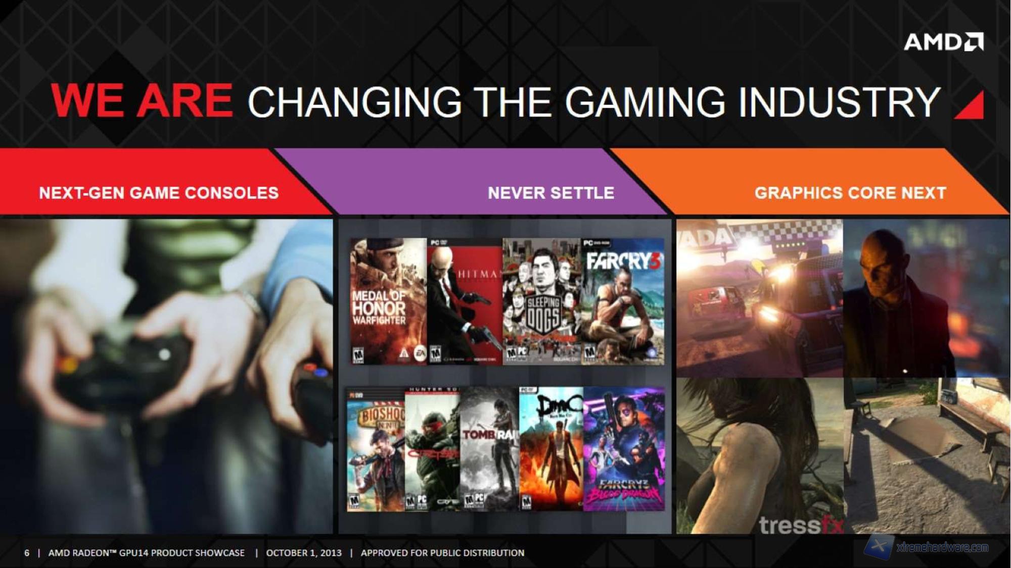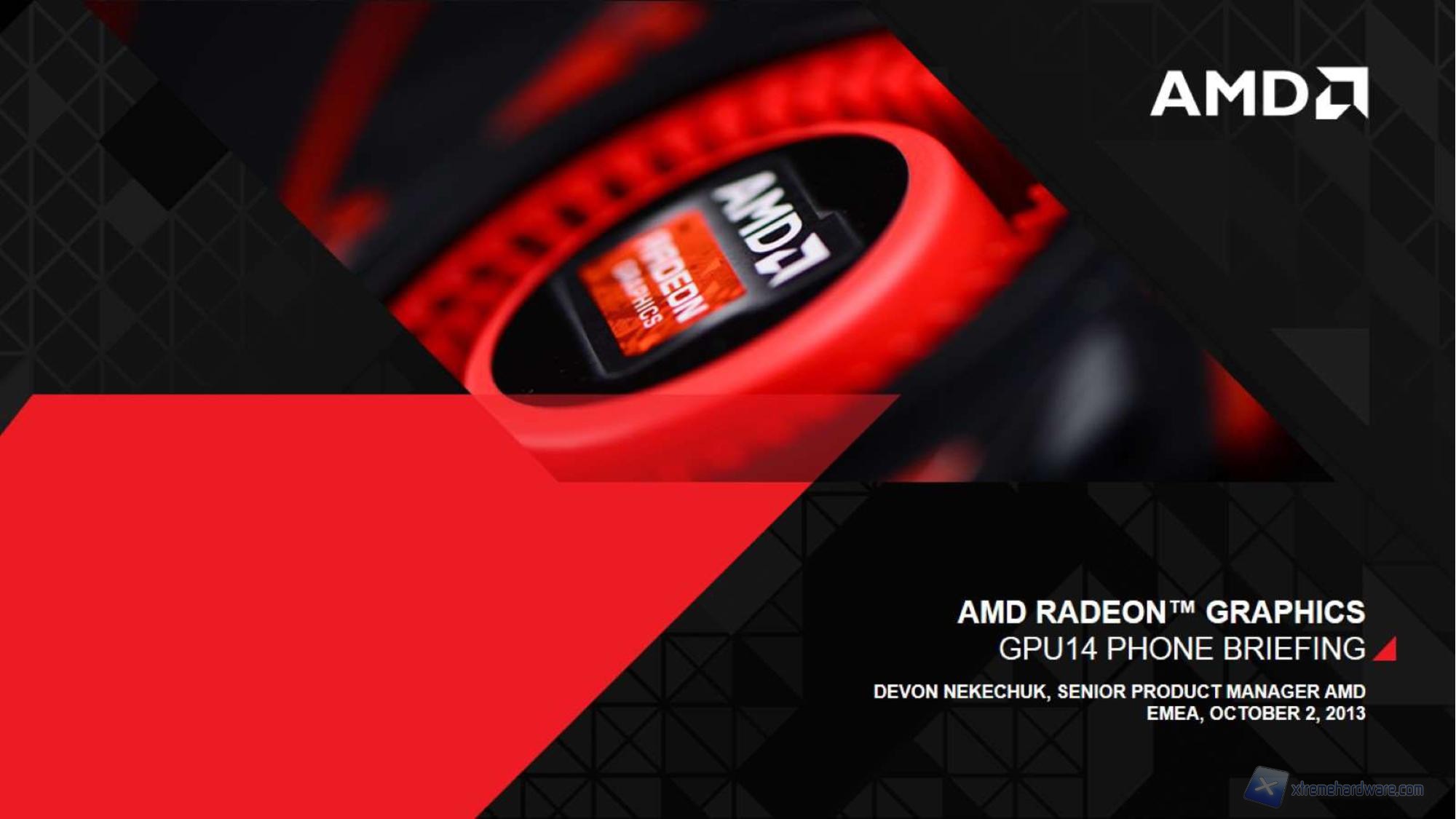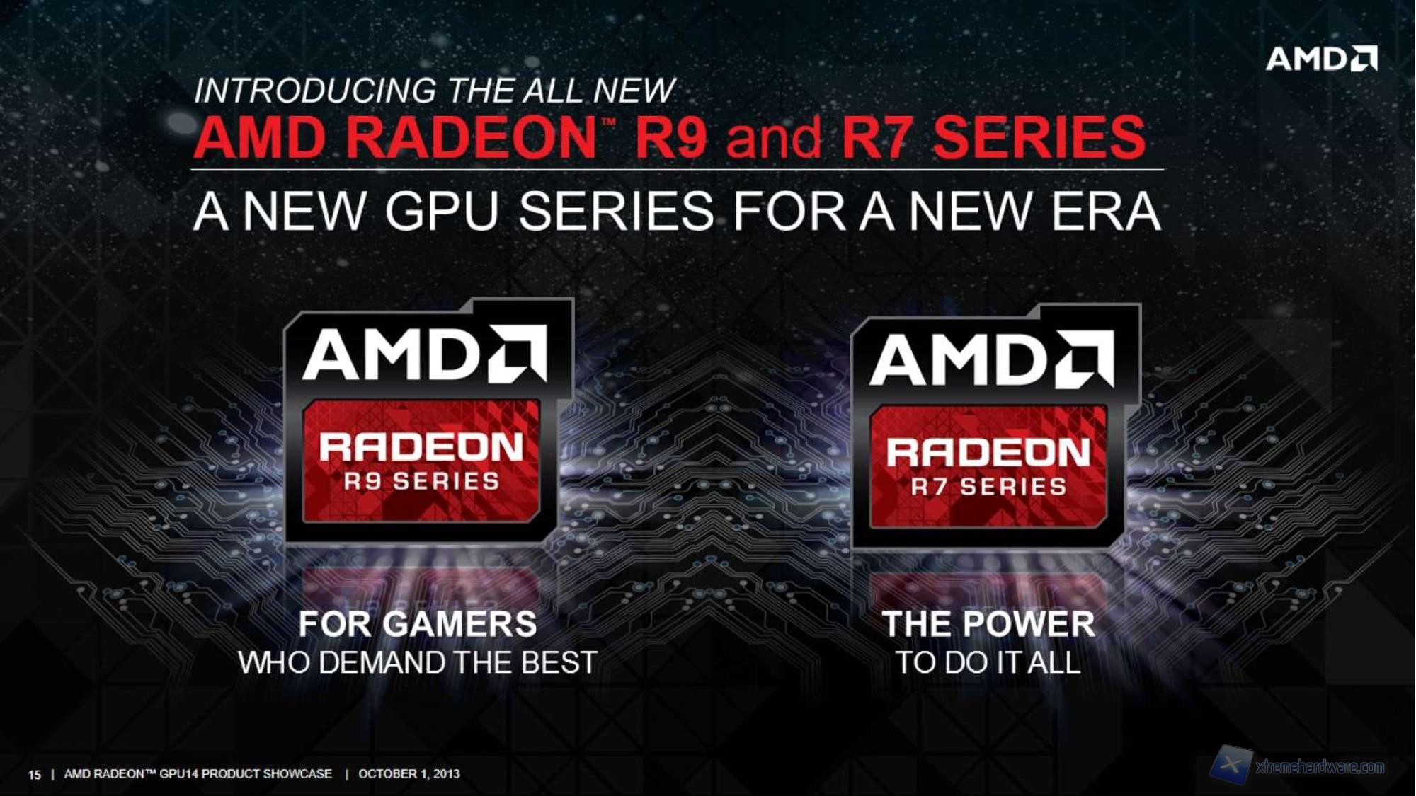 Il 25 Settembre 2013 AMD ha svelato con un annucio al GPU '14 Tech Day le future soluzioni che sono attese per le prossime settimane ed anche altre diverse novità molto interessanti. Le notività principali sono rappresentate da una nuova serie di schede grafiche con nome in codice Hawaii, che va a identificare tutta una nuova serie di schede video basata sulla nuova architettura Graphics Core Next 2.0. Dalle slide che AMD ha mostrato sono emerse in particolare due serie di VGA: la prima R7 e la seconda R9.