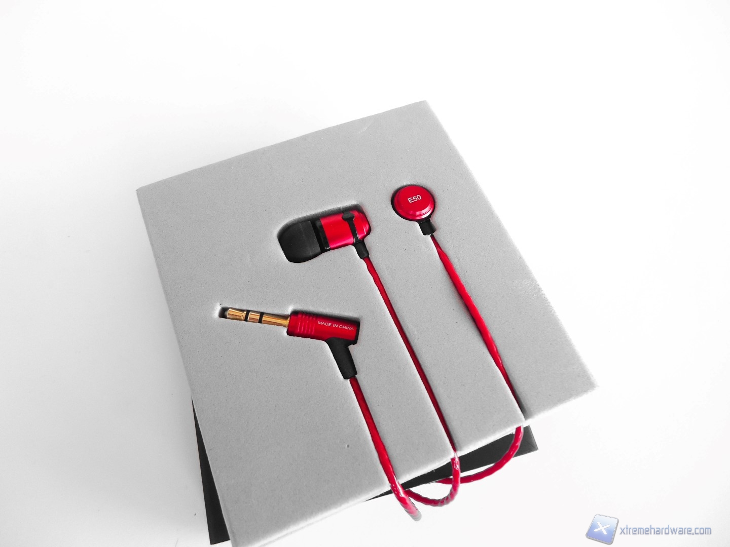Analizzando le E80 osserviamo che anche quest’ultime sono riposte all’interno della stessa protezione in spugna delle E50, tutto questo per salvaguardarle da eventuali urti durante il trasporto. Rimuovendo anche quest’ultima protezione mettiamo in mostra in tutta la loro bellezza questi auricolari contraddistinti da un bellissimo rosso metallizzato per gran parte della struttura e da un nero opaco per la parte posteriore delle cuffie. A differenza delle E50 queste cuffie sono realizzate quasi completamente in alluminio ad eccezione della parte posteriore che è realizzata in plastica, ma come possiamo vedere dalle immagini entrambi i prodotti presentano lo stesso design rosso-nero. Mettendo in mostra la parte inferiore degli auricolari notiamo che vi è impressa la lettera R o L che ci permetterà di distinguere in quale orecchio vadano le rispettive cuffie. Togliendo il gommino, possiamo vedere che l’intera struttura dell’auricolare è realizzata in metallo, cosa molto gradita dagli utenti più esigenti, e che inoltre come per le E50 troviamo un foro che presumibilmente ha le stesse funzionalità espresse per l’altro modello precedentemente. Anche in questo caso la retina metallica che protegge l’interno della cuffietta è ben realizzata e non presenta sbavature nell’assemblaggio.