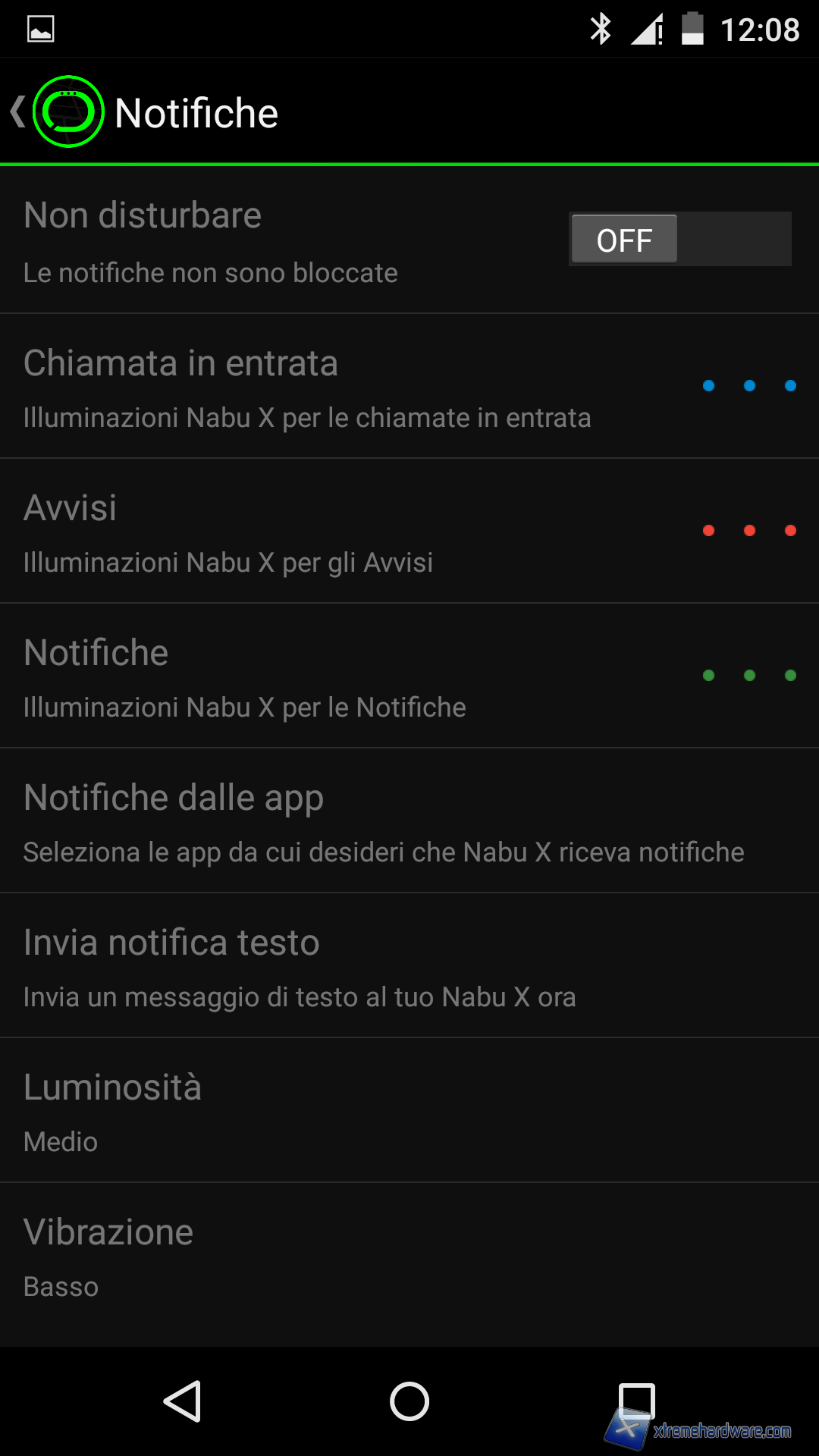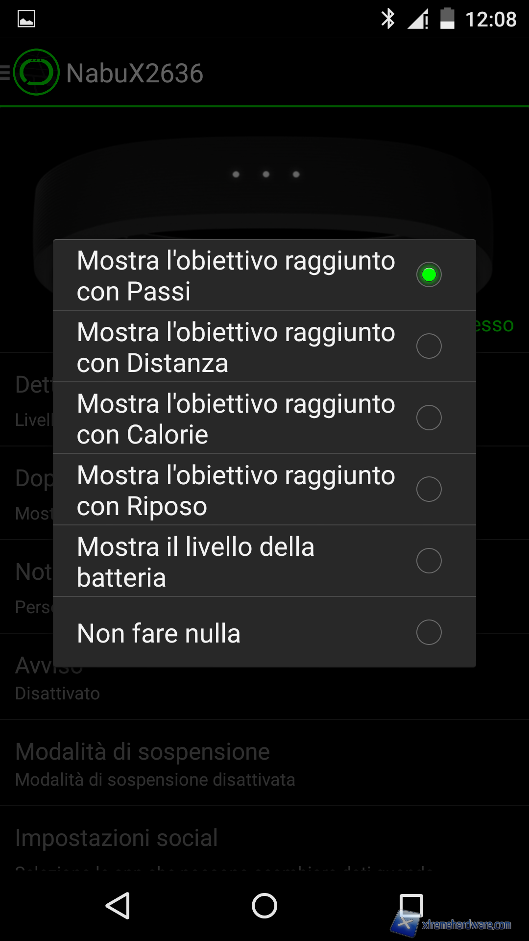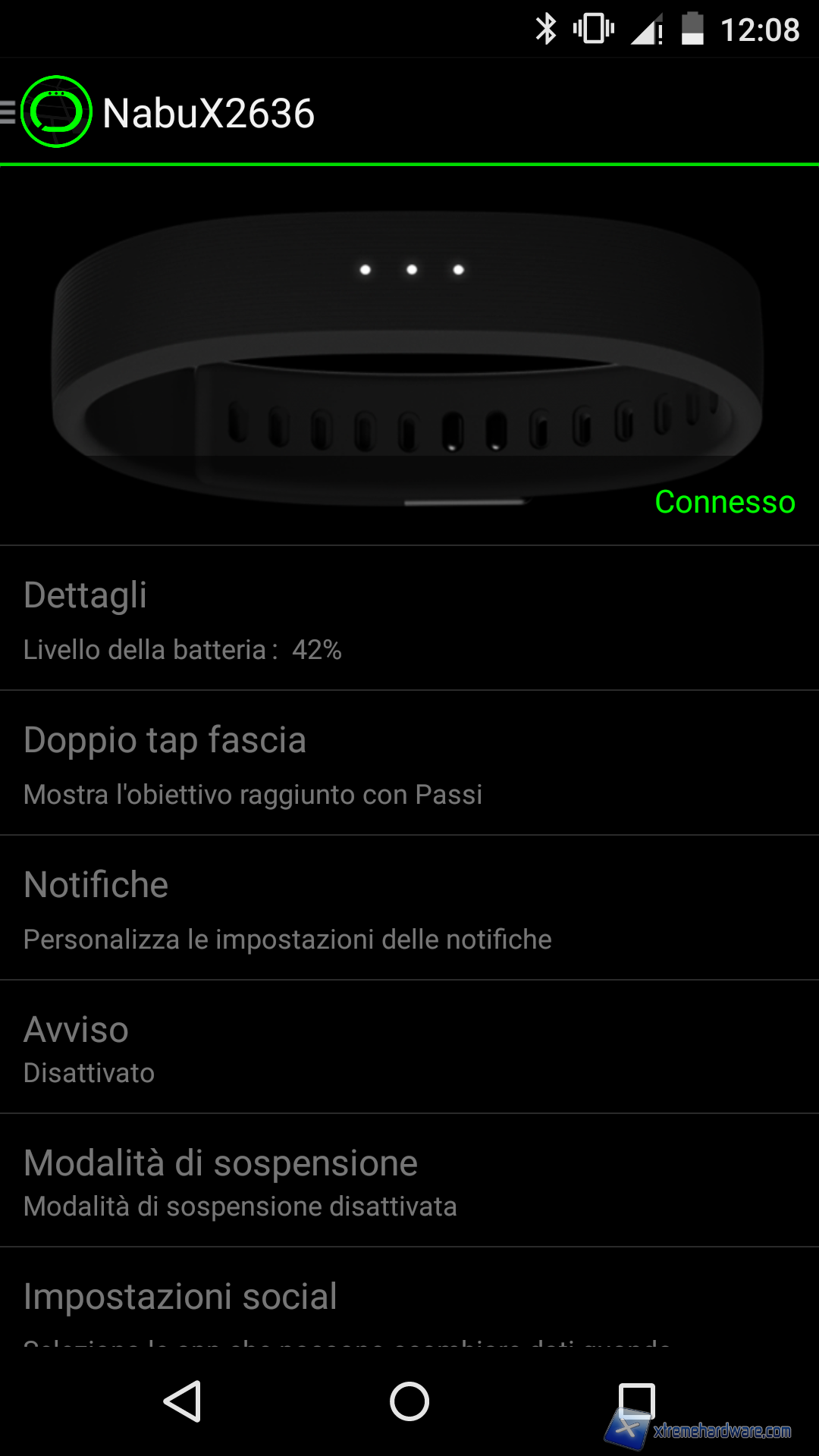 Nel Menù principale dell’app potremo anche impostare una nuova fascia aka Nabu X o accedere ad altre informazioni nonché scaricare altre applicazioni compatibili con il sistema di notifica del Nabu X.