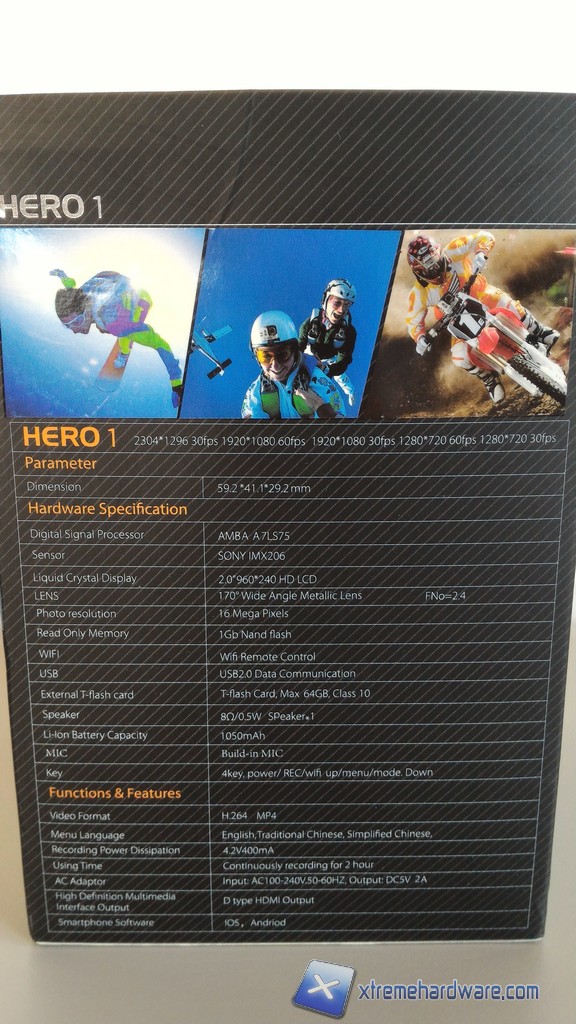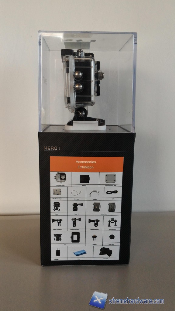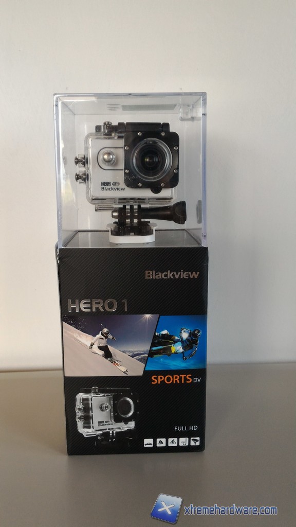 Andiamo a vedere come si presenta la confezione della cam e analizziamo anche il bundle. La confezione è molto simile a quella dei prodotti GoPro, troviamo la cam in bella mostra e al di sotto una scatolina scura che contiene una vasta gamma di accessori, tutti compatibili con lo standard GoPro.