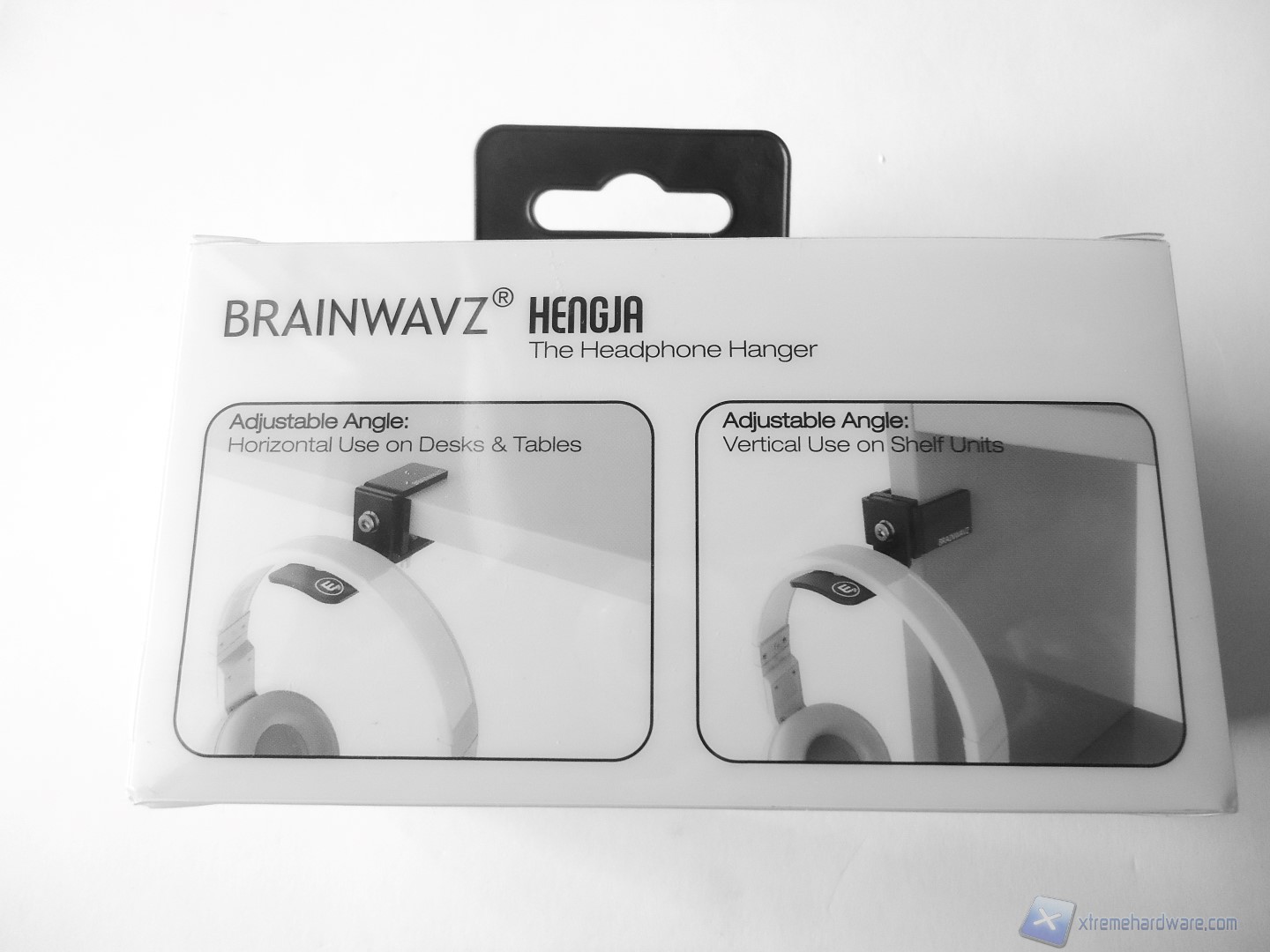Ora andiamo a vedere la confezione che custodisce l’holder per cuffie Hengja. La scatola si presenta di forma rettangolare e trasparente in modo da permettere una prima visione del prodotto prima dell’acquisto. Nella parte frontale troviamo il logo dell’azienda e il nome del prodotto contenuto nella scatola.