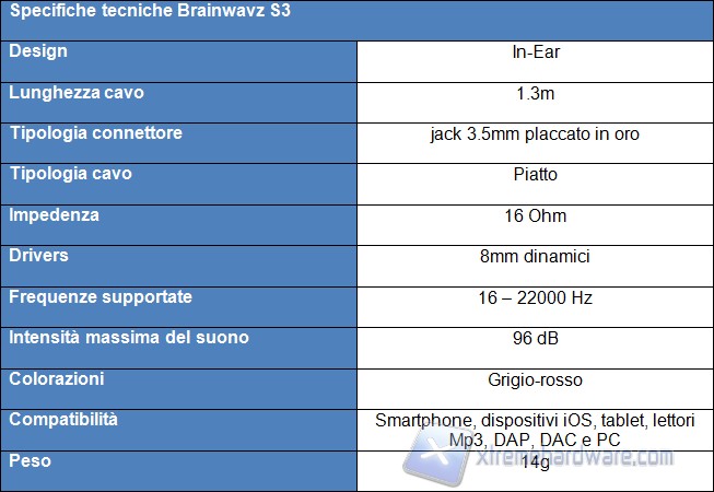 Cominciamo l’analisi dei nostri sample partendo prima di tutto da un’analisi tecnica delle auricolari S3, per valutare meglio le sue caratteristiche e di conseguenza la sua posizione sul mercato. Per rendere maggiormente fruibile questa analisi tecnica, riporteremo le caratteristiche del prodotto all’interno di una pratica tabella: