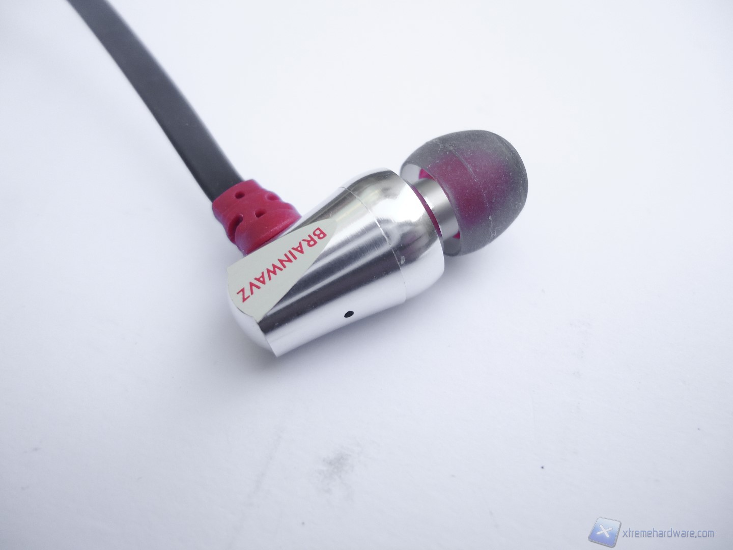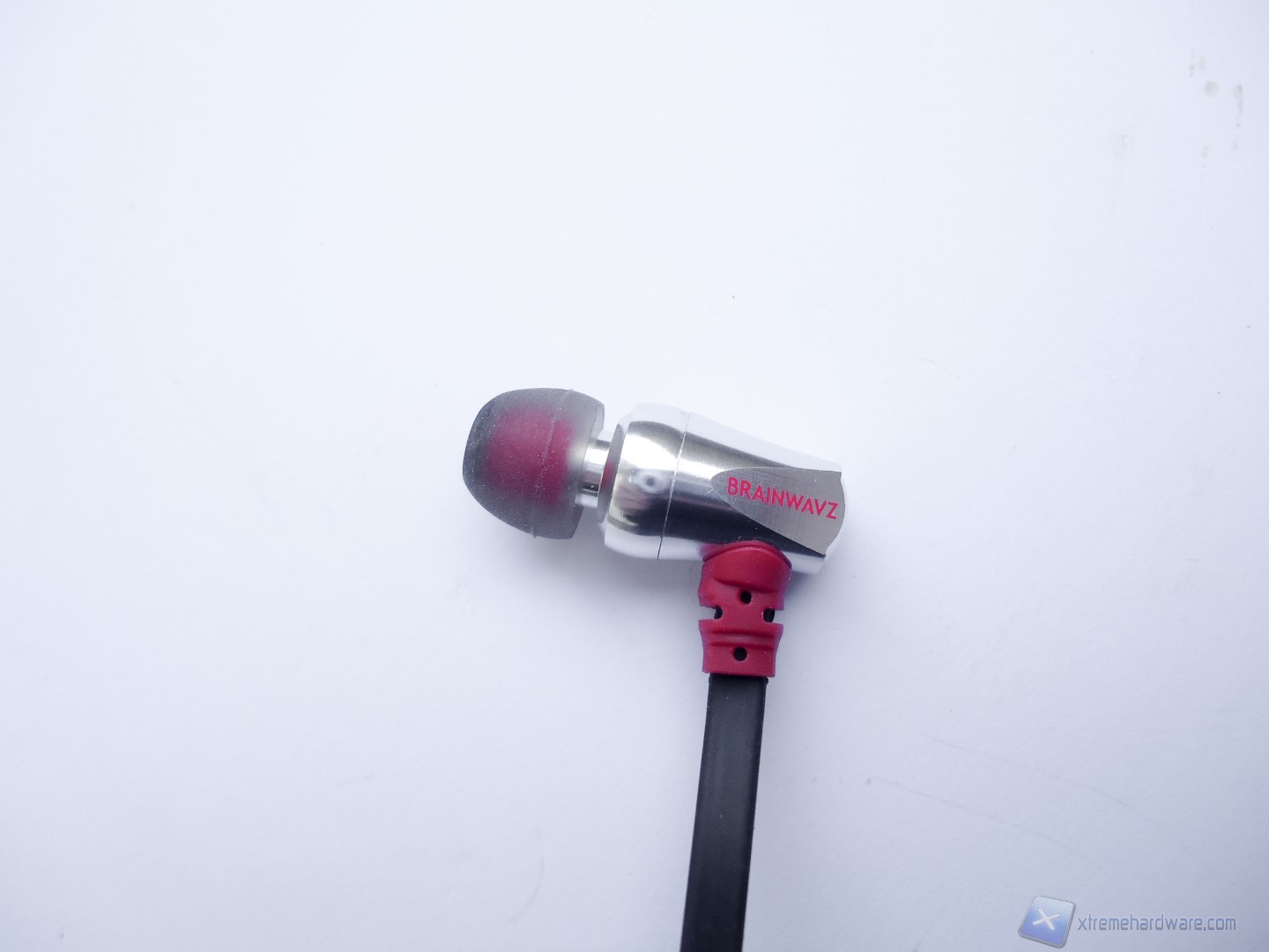 Ora passiamo all’analisi costruttiva e qualitativa per queste Brainwavz S3. Togliendo il prodotto dalla sua custodia, notiamo che sono caratterizzate da una doppia colorazione rosso-grigia per quanto riguarda gli auricolari e completamente nera per il resto delle cuffie. Gli auricolari sono realizzati completamente in metallo e ciò rende il prodotto davvero resistente a urti e cadute. Il metallo è spazzolato ed è arricchito solamente dalle stampe del logo delle lettere R o L che ci permettono di capire se teniamo in mano l’auricolare destro o il sinistro. Togliendo il gommino auricolare notiamo che questa parte nascosta è realizzata anch’essa in metallo e la retina metallica che protegge l’interno della cuffietta è davvero molto fitta e non consentirà nemmeno al più piccolo granello di polvere di penetrare all’interno. Nella parte superiore degli auricolari troviamo un piccolo foro per la camera di risonanza dei drivers. Infine la parte posteriore delle cuffie presenta la parte metallica lucidata a specchio, il che le rende davvero molto eleganti e belle da vedere.