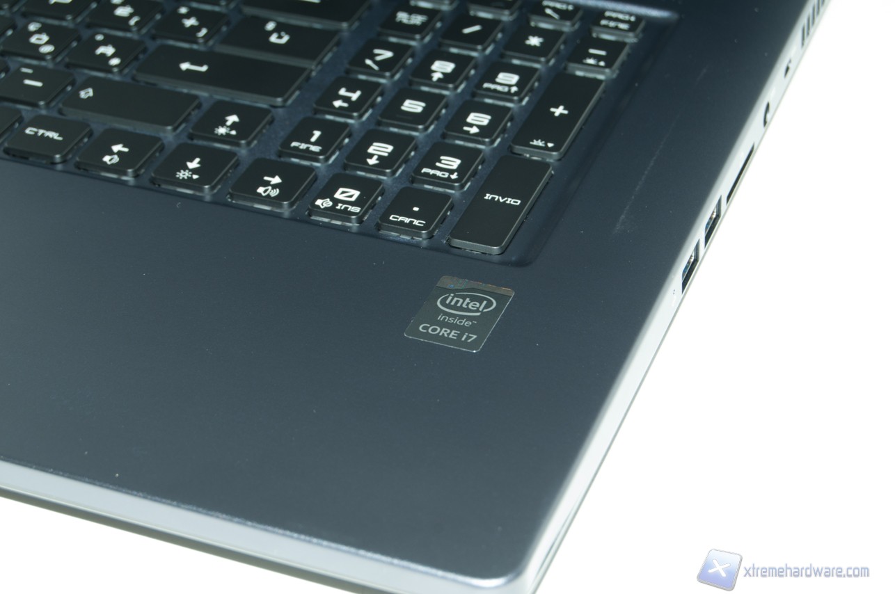 La tastiera è ad isola e trova posto in uno spazio dedicato, anch'esso incavato.