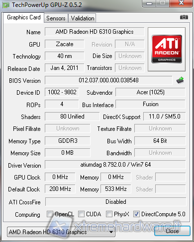 Una volta acceso, il notebook Acer impiega circa 30 secondi ad entrare in Windows 7, un tempo d'accesso molto buono viste le caratteristiche tecniche. Prima di tutto abbiamo constatato le specifiche hardware attraverso i software CPU-Z e GPU-Z.