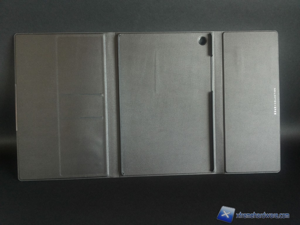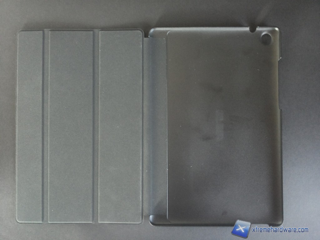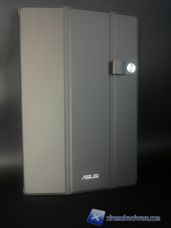 La prima di esse è denominata Asus TriCover ed è una cover del tutto analoga a quanto vediamo su decine di altri tablet. TriCover è realizzata in plastica, presenta il retro con una finitura zigrinata che riprende i materiali costitutivi del tablet mentre il frontale, di colore grigiastro, è suddiviso in tre fasce flessibili che permettono di posizionare la cover in modo da sorreggere il tablet. Sul frontale c'è anche una linguetta atta ad alloggiare la Z Stylus, troviamo inoltre il magnete indispensabile per l'on\off automatico del display.