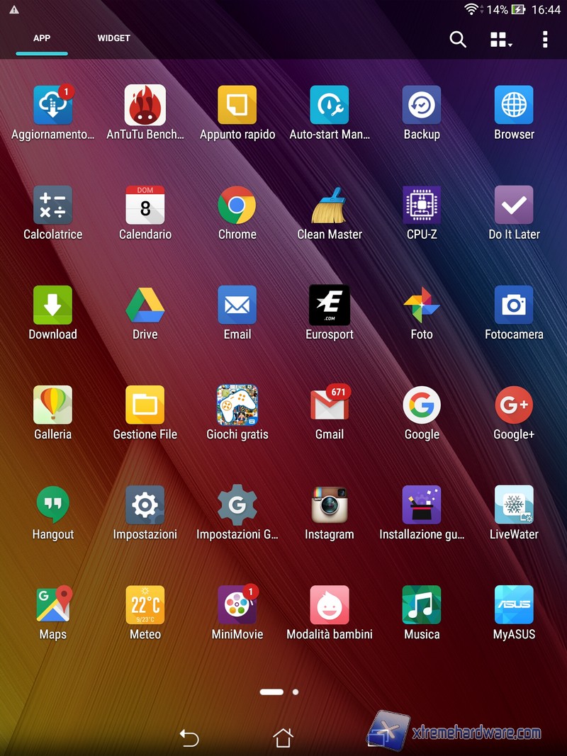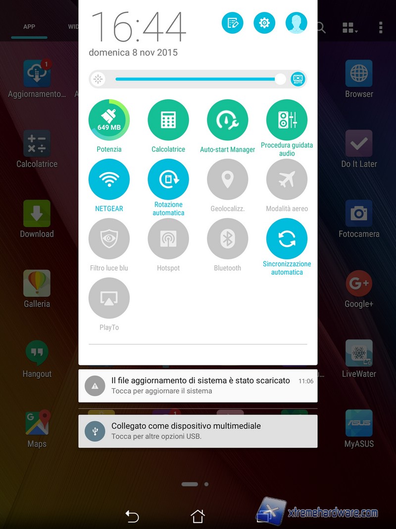 Andiamo ora a vedere il software, che naturalmente è Android aggiornato alla versione 5.0, dominato dalla ormai apprezzatissima ZenUI. Abbiamo già visto la ZenUI in tutte le salse prima su ZenFone 5 e quindi su ZenFone 2, non possiamo fare altro che rimarcare nuovamente il grande lavoro svolto da Asus che ha saputo realizzare un'interfaccia grafica gradevole, minimale ma al tempo stesso vivace e soprattutto estremamente completa tanto che i meno esperti potrebbero trovarsi quasi in difficoltà dinnanzi alla miriade di opzioni per personalizzare l'aspetto e il funzionamento del tablet. Niente paura, il sistema operativo è condito con moltissimi tutorial utili per apprendere al meglio tutte le potenzialità della ZenUI. Segnaliamo inoltre che Asus ha inserito anche su questo tablet due modalità molto interessanti e molto utili, la prima è la modalità semplificata che facilità l'utilizzo del dispositivo agli utenti meno esperti mentre la seconda è la modalità bambini che attiva una UI semplificata e limitata nel numero di app, esattamente quel che serve se ogni tanto volete lasciare per qualche minuto il tablet ai vostri bambini. Il nostro giudizio ricalca quindi quanto abbiamo già espresso in occasione delle recensioni degli altri dispositivi Android di Asus, abbiamo perciò un software veramente completo e ottimamente realizzato, l'unica pecca è la quantità di applicazioni preinstallate. Alcune di queste si potrebbero eliminare.