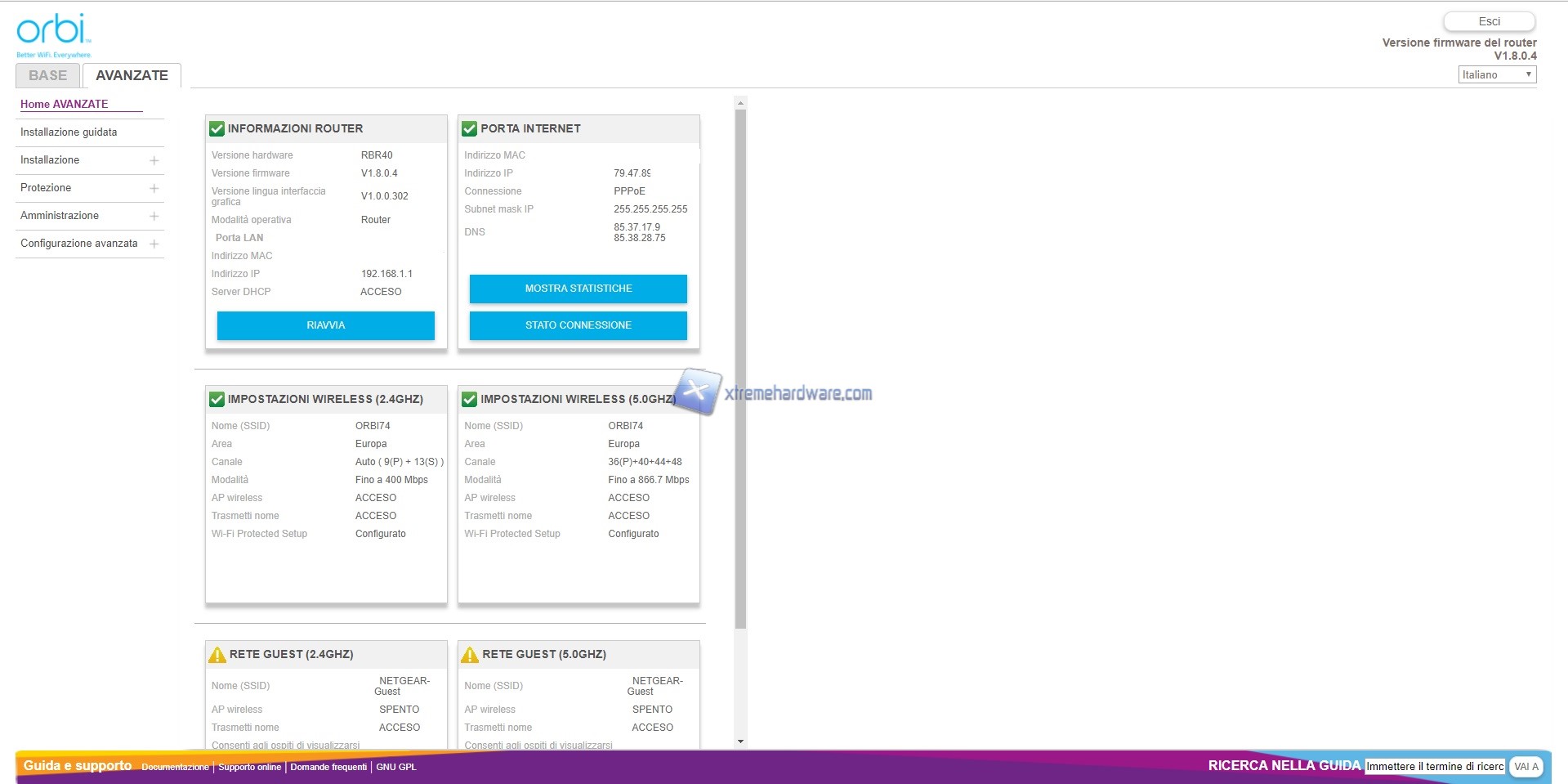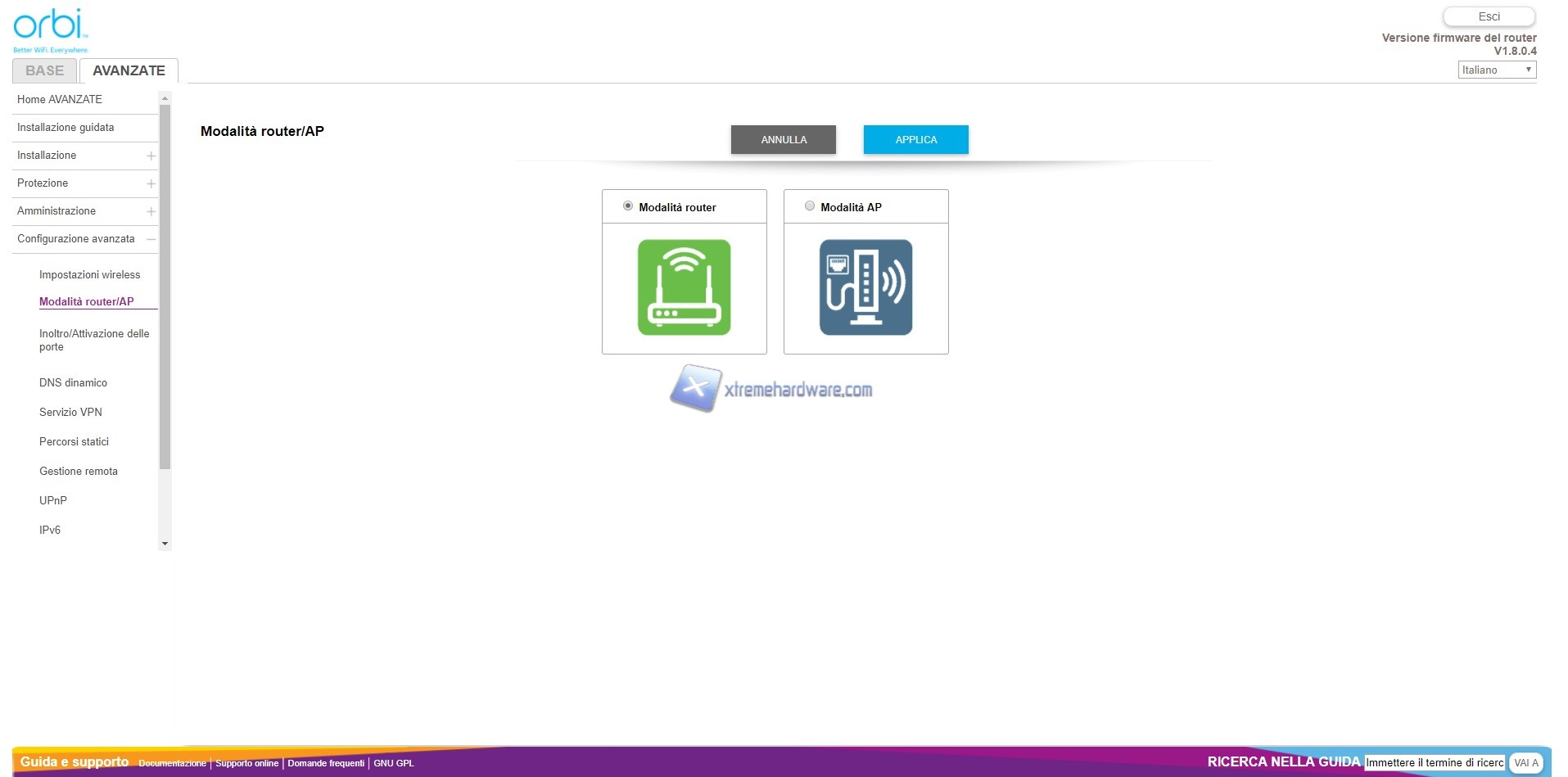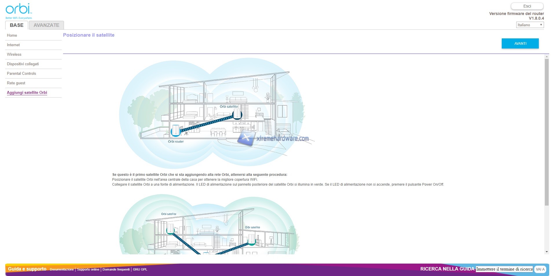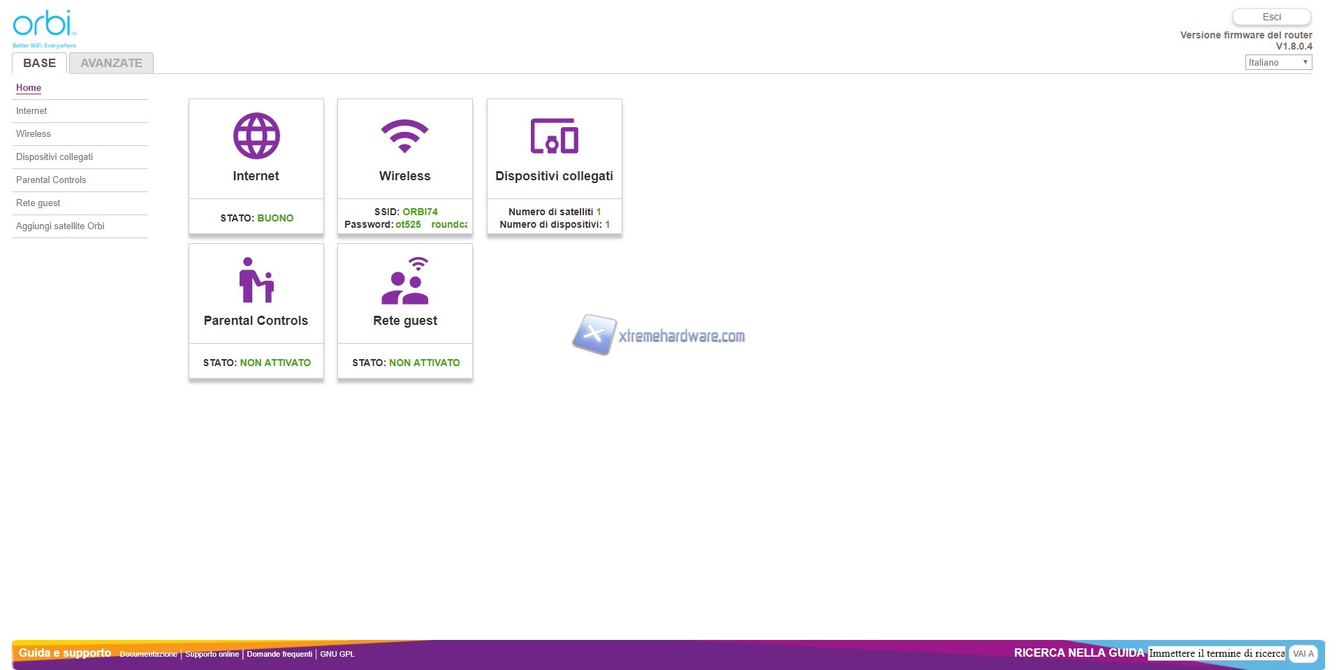 Al pari di un vero modem e/o modem/router il router Orbi offre diversi Menù e sottomenù atti alla massima configurabilità. Per l’esattezza avremo i due Menù principali ‘’Base’’ per una configurazione rapida e ‘’Avanzate’’ per una configurazione avanzata.