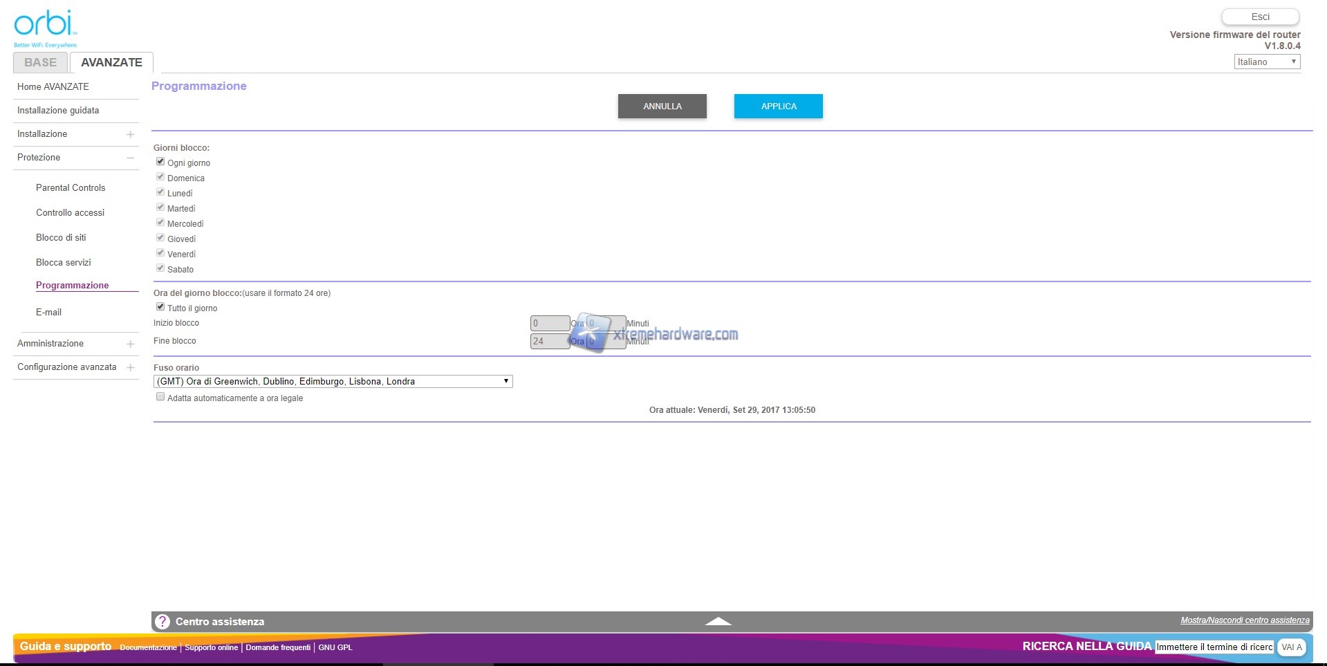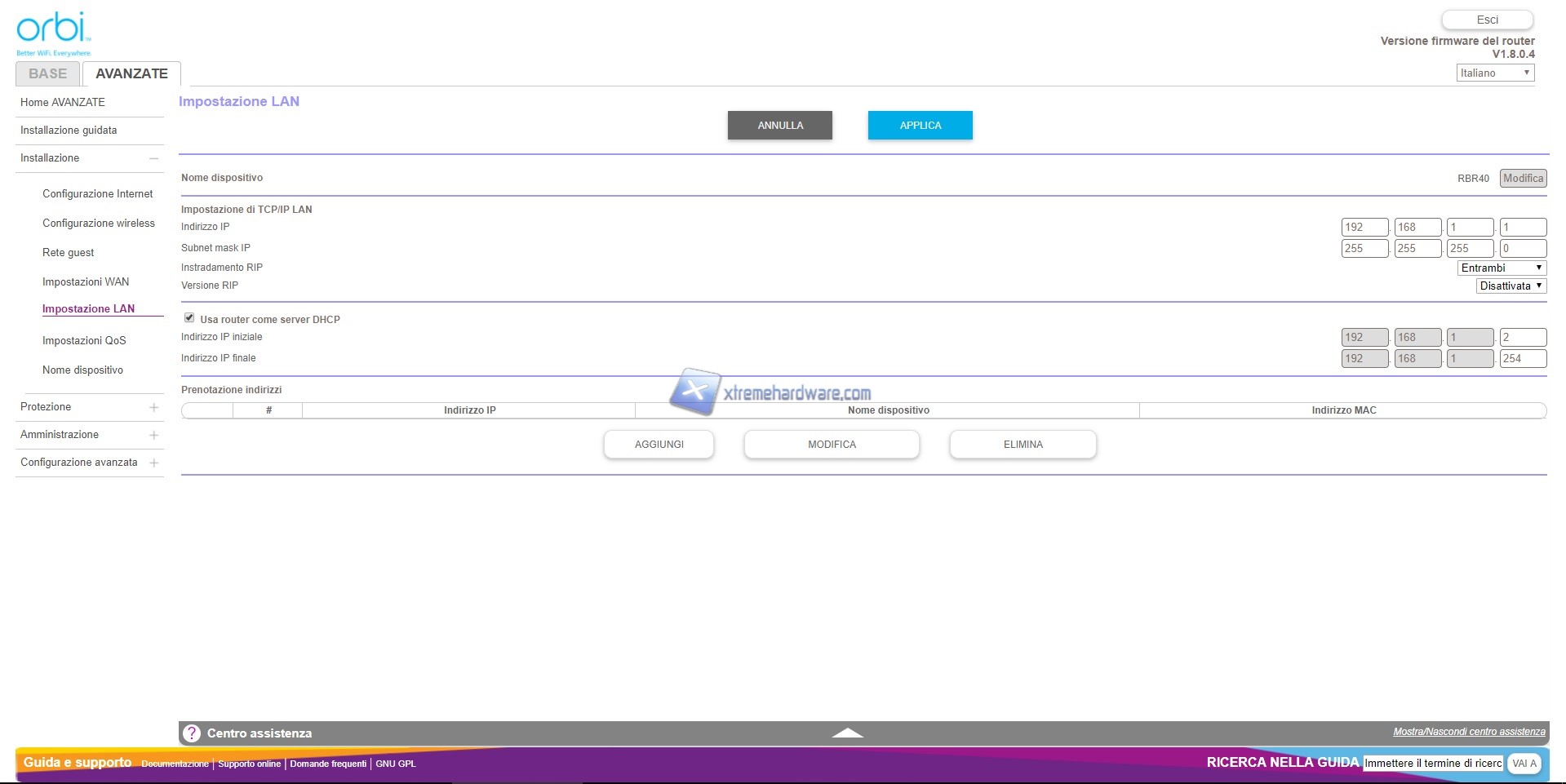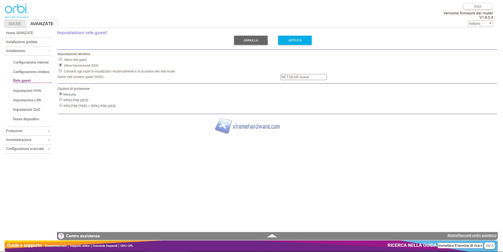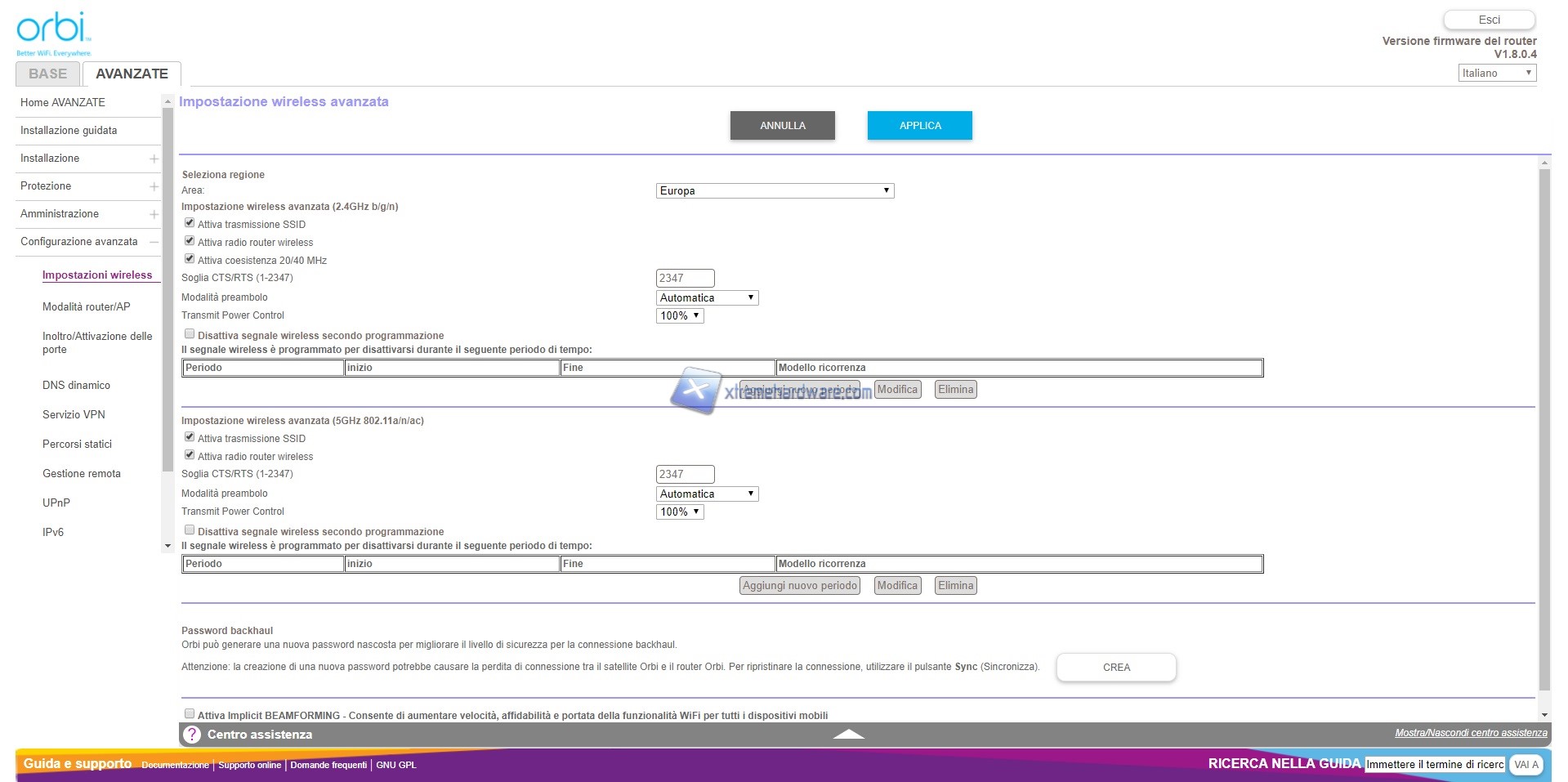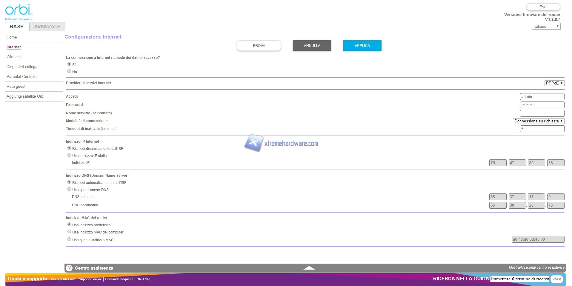 Al pari di un vero modem e/o modem/router il router Orbi offre diversi Menù e sottomenù atti alla massima configurabilità. Per l’esattezza avremo i due Menù principali ‘’Base’’ per una configurazione rapida e ‘’Avanzate’’ per una configurazione avanzata.