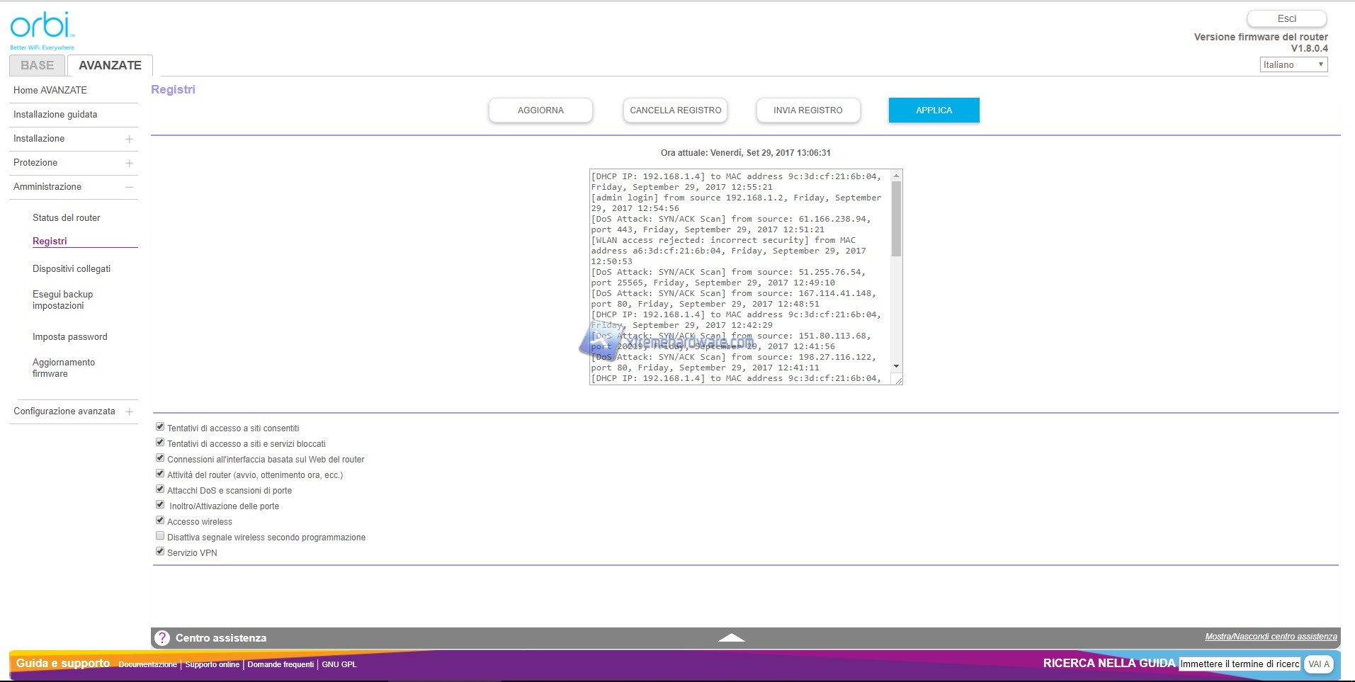 Se volessimo modificare qualche impostazione precedente o accedere a qualche funzione aggiuntiva ci basterà digitare nuovamente l’indirizzo http://orbilogin.com per accedere al pannello di gestione vero e proprio.