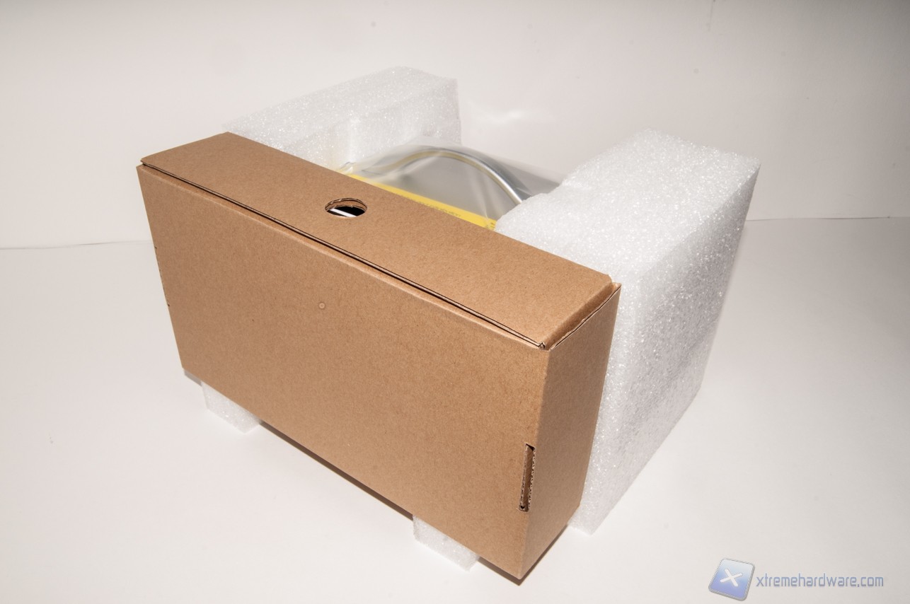 Aprendo la confezione notiamo come il prodotto sia ben protetto dal gioco di incastri tra la scatola di cartoncino, contenente cavi e accessori, e poliuretano espanso.