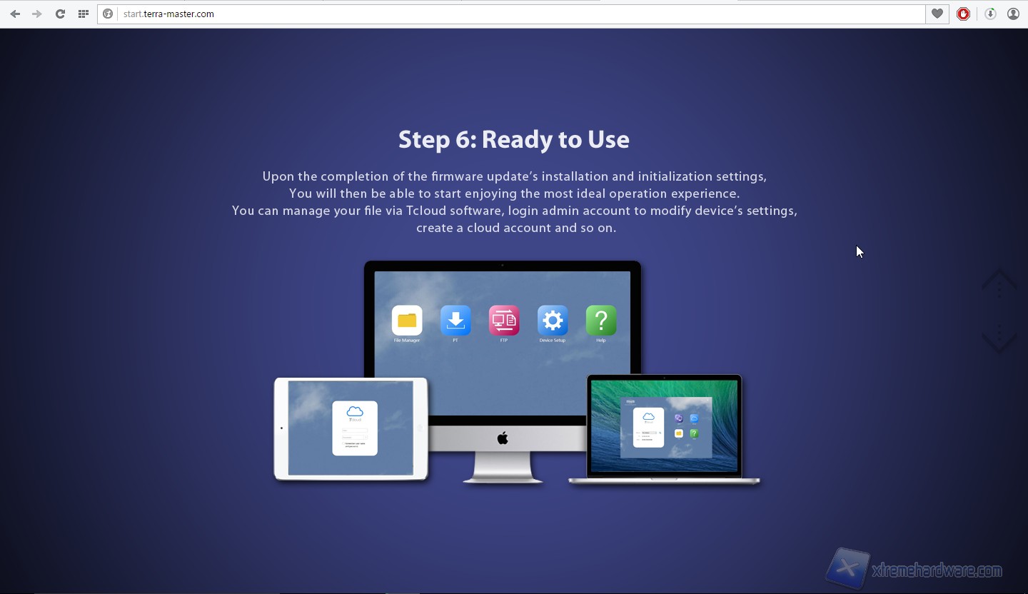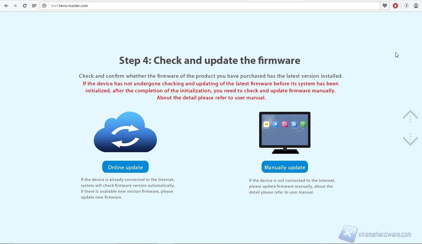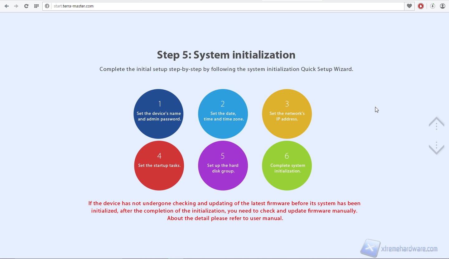Passiamo dunque alla prima configurazione di sistema. Colleghiamo il prodotto alla corrente ed alla rete ed avviamolo. Sentiremo inizialmente due “beep”, uno quando collegheremo il prodotto alla presa elettrica ed uno dopo aver premuto il tasto di avvio. Rechiamoci dunque sul sito “start.terra-master.com”; veniamo accolti da una schermata introduttiva dove è possibile scegliere dal menù a tendina il modello del NAS che vogliamo configurare, scegliamo F2-NAS2.