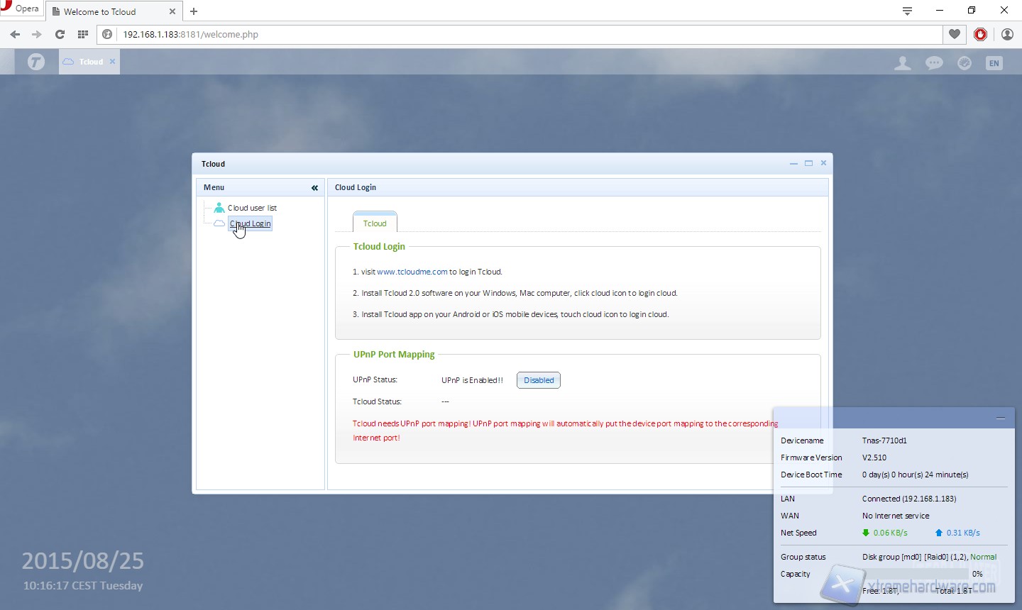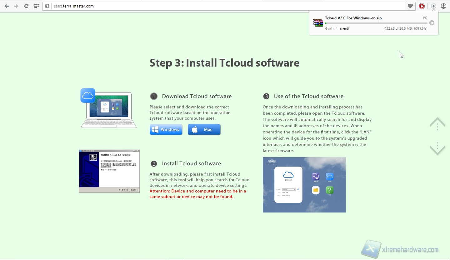 Scarichiamo il manuale di sistema e soprattutto il software TCloud che ci permetterà di rilevare il sistema sulla rete.