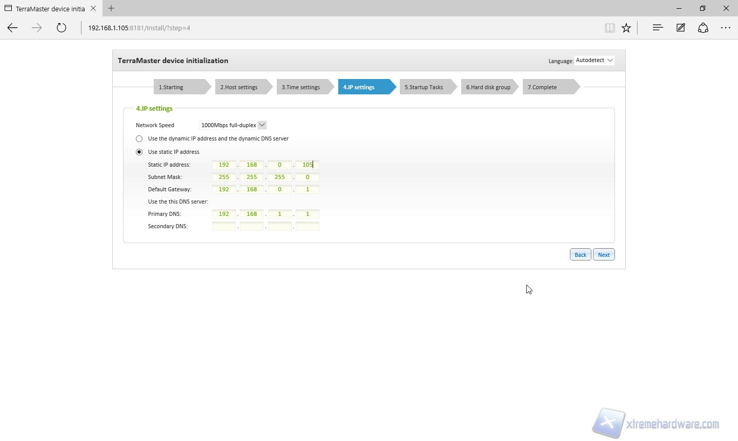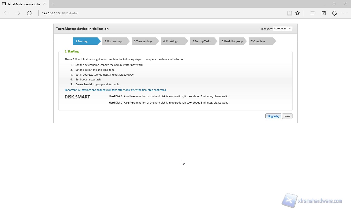 Attendiamo che il software riconosca il nostro F2-NAS2 sulla rete interna e premiamo l’icona “LAN”. Veniamo rimandati nuovamente al browser dove possiamo iniziare la vera configurazione. Lo step 1 non è altro che un riassunto di quelle che saranno le opzioni che andremo a modificare/impostare.