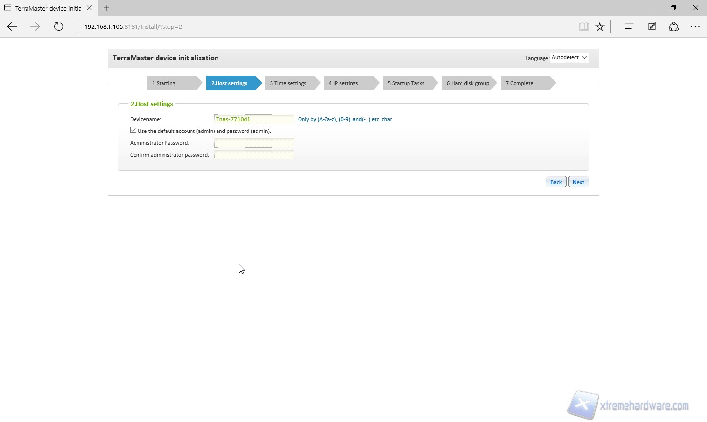Nella pagina “Host settings” scegliamo il nome del NAS sulla rete ed eventualmente una password di amministratore (consigliato) diversa da quella di default.