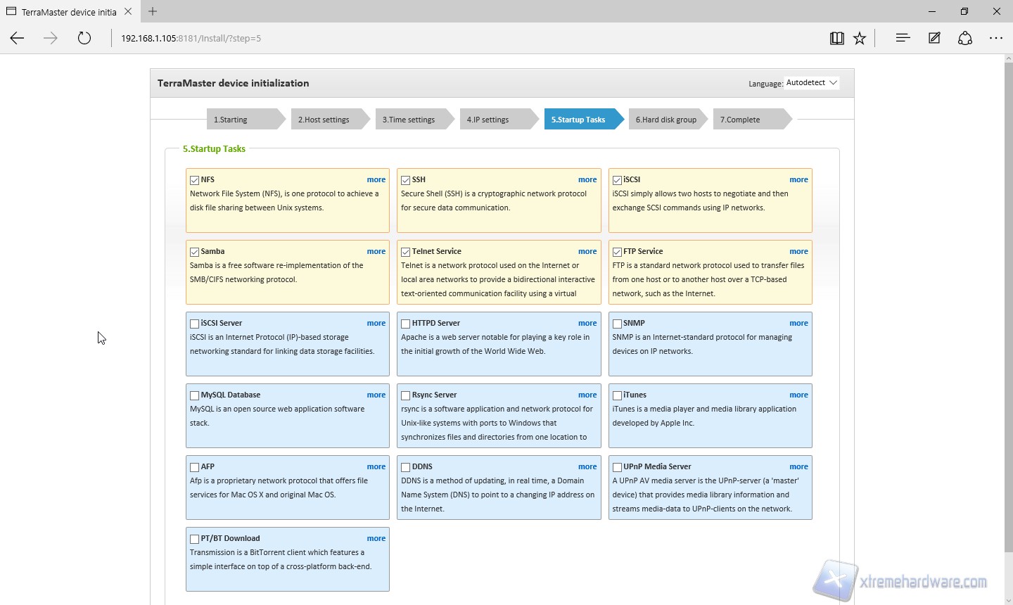 La pagina “Startup Tasks” permette all’utente di scegliere quali servizi avviare automaticamente in fase di avvio di sistema, ovviamente questa scelta può essere successivamente modificata.