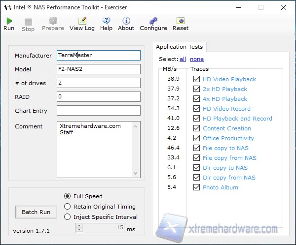 Questa suite è stata sviluppata da Intel appositamente per testare le performances dei Network Attached Storage. Tale applicazione effettua test in svariati ambiti riproducendo situazioni tipiche nell’utilizzo dei NAS, come ad esempio la riproduzione di contenuti multimediali, lo spostamento di file e cartelle o la visualizzazione di Photo Album.