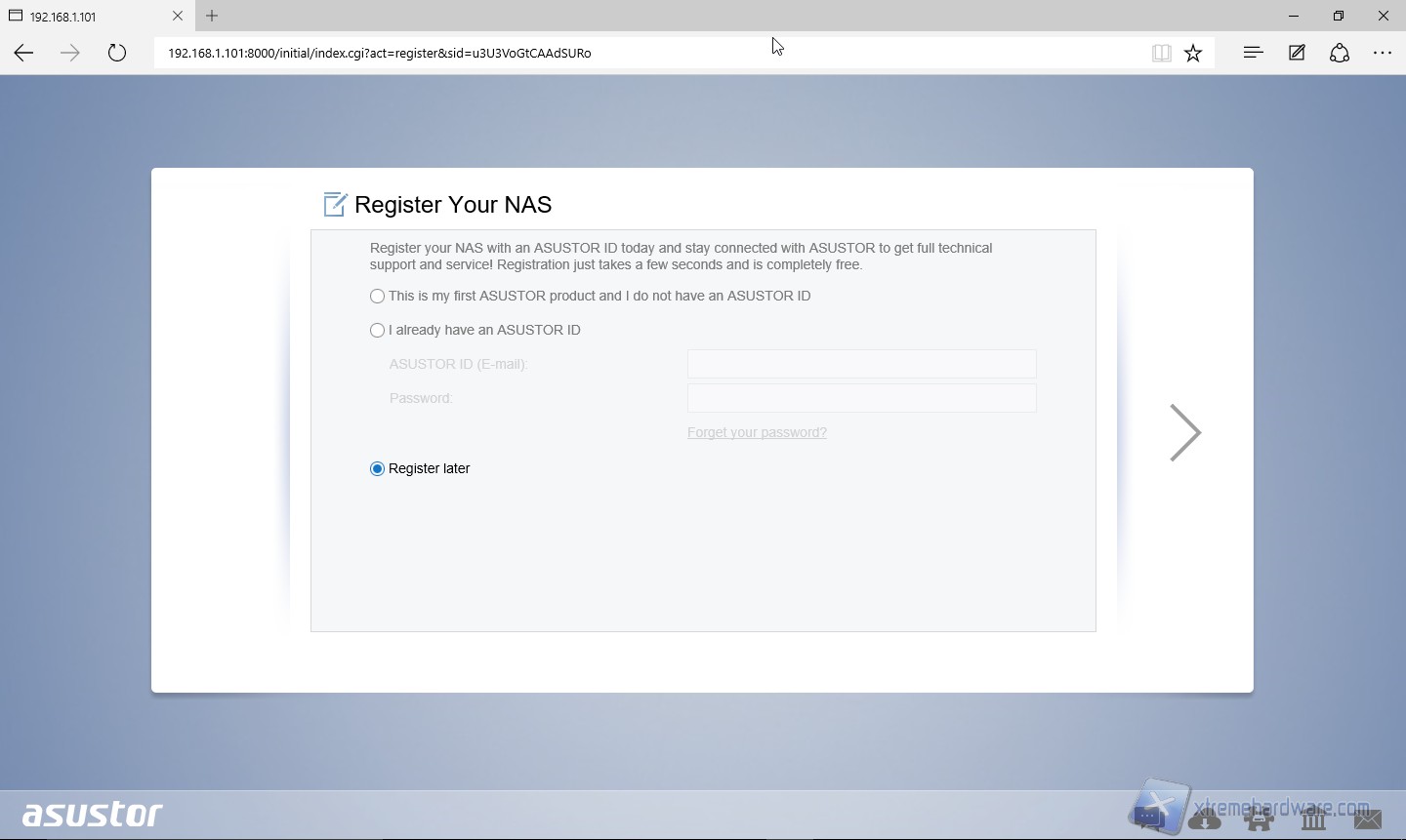 Una volta finita l’installazione scegliamo se registrare immediatamente il nostro NAS Asustor oppure rimandare questa operazione.