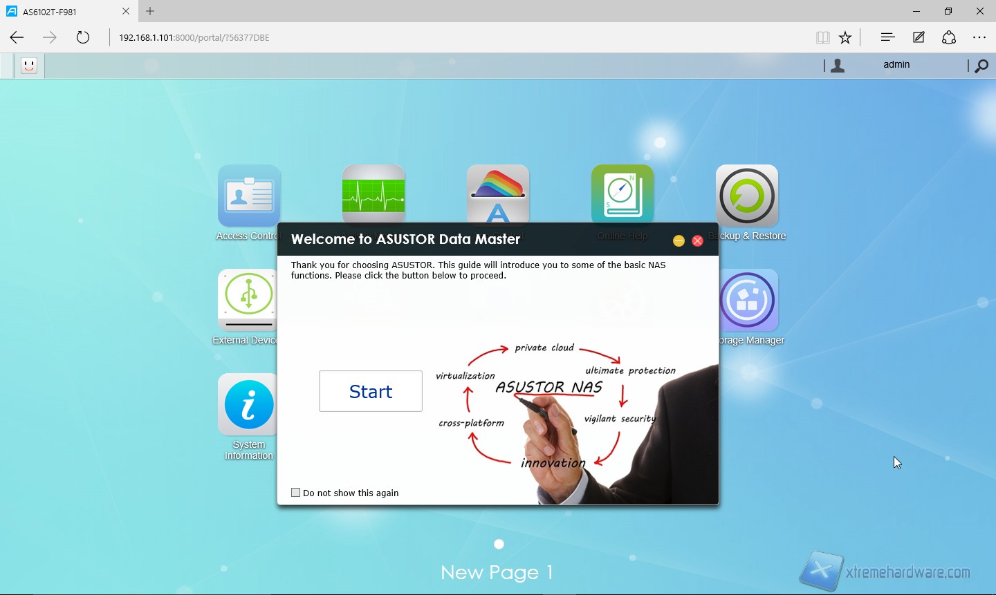 Per poter utilizzare il nostro Asustor AS6102T dobbiamo effettuare, come di consueto, la prima configurazione guidata. Apriamo dunque il browser e rechiamoci alla pagina “start.asustor.com” dove verremo guidati passo passo verso il completamento di questa procedura.
