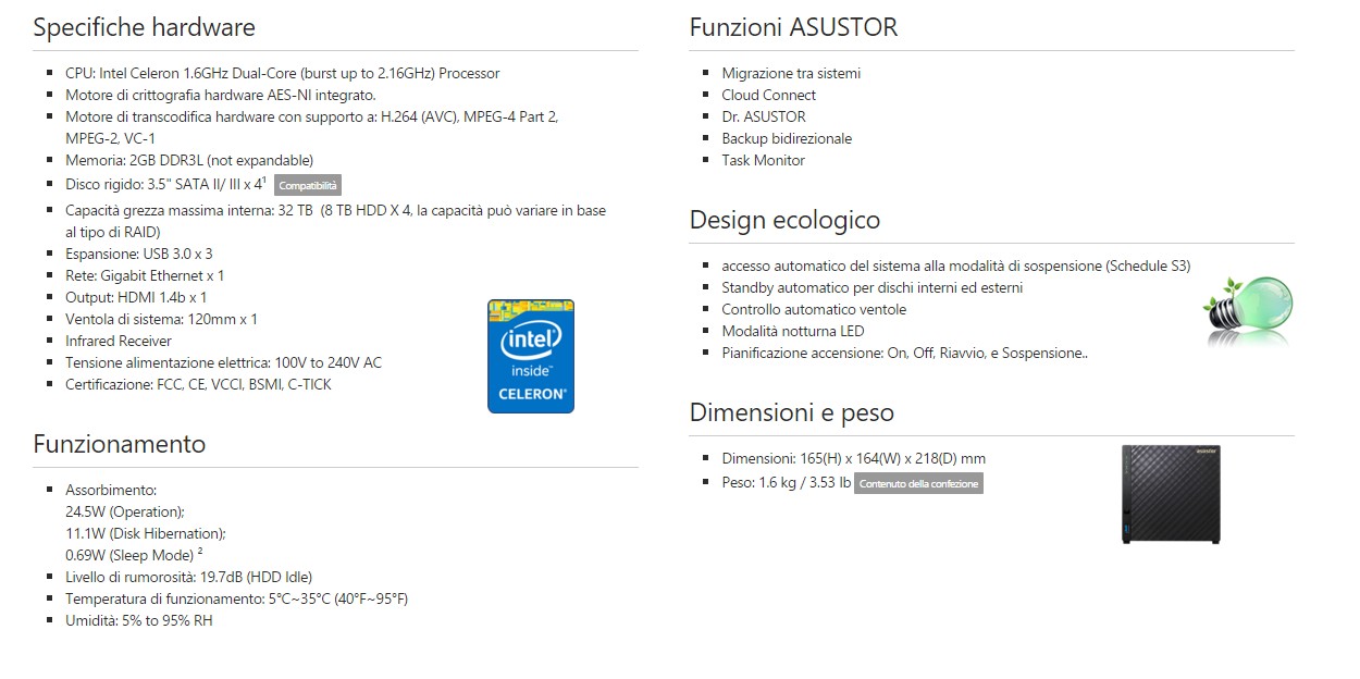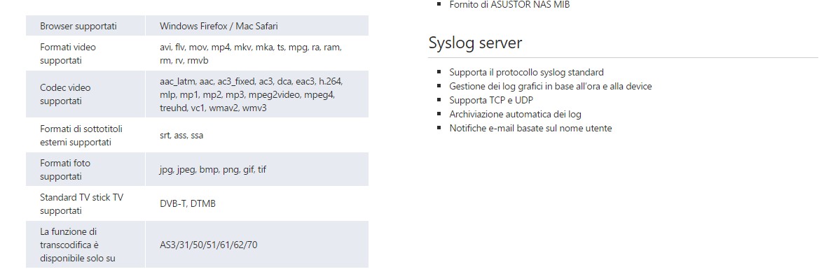 Riportiamo di seguito le caratteristiche tecniche dell'Asustor AS3104T ricordandovi che potrete trovarle anche sul sito ufficiale al seguente indirizzo: