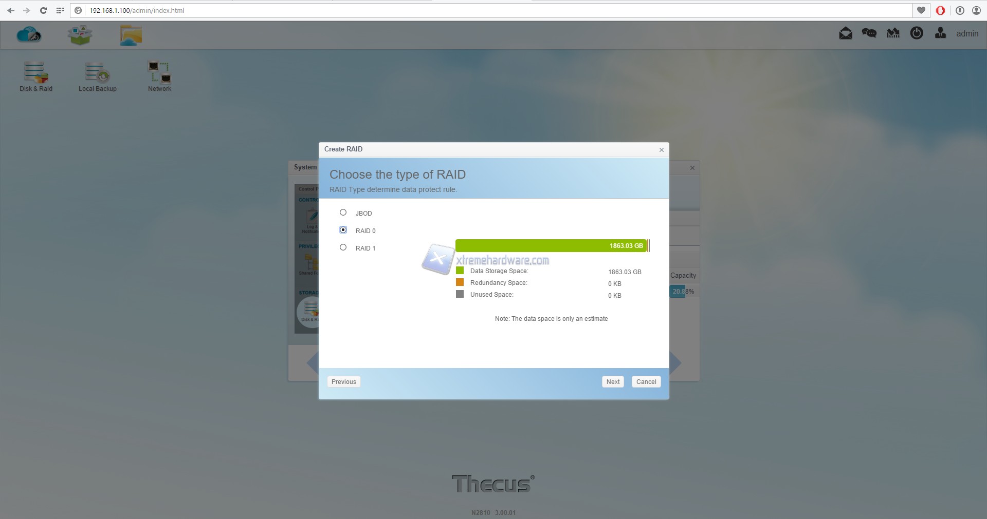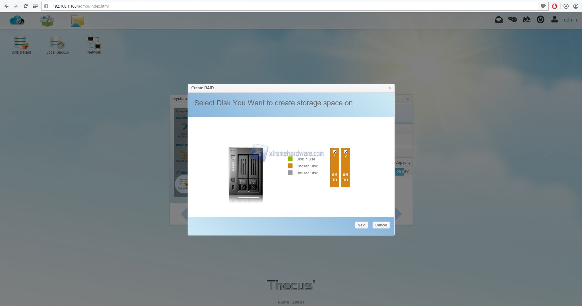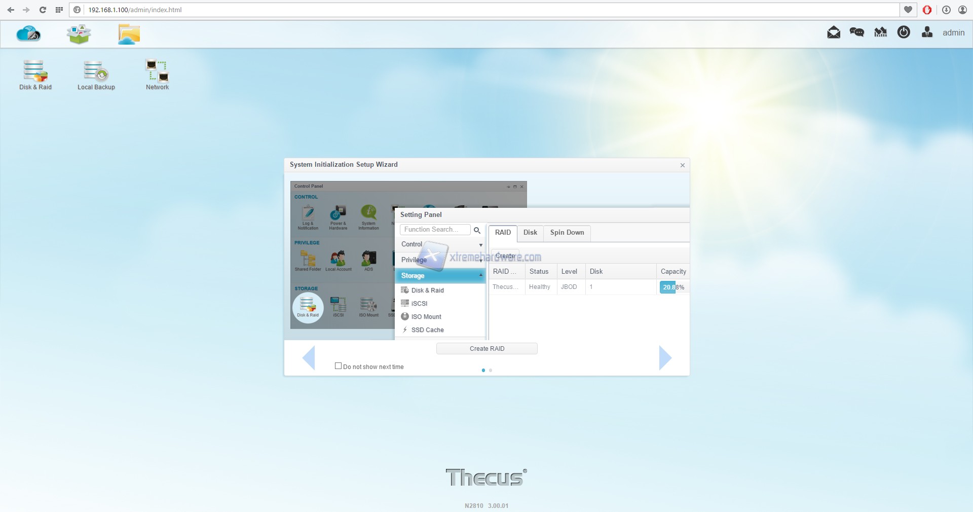 Il primo step da effettuare una volta entrati nel ThecusOS 7 è quello di configurare i dischi che andremo ad utilizzare come memoria di storage.