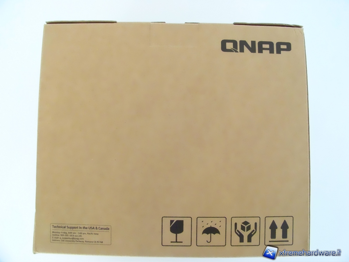 La scatola del QNAP TS-259 Pro+ è molto semplice, caratterizzata da una bicromia di colori, il marrone e il nero delle scritte stampate.