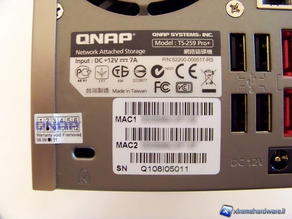 Vi è anche un adesivo riportante i MAC Address e un sigillo che invalida la garanzia in caso di apertura del NAS.