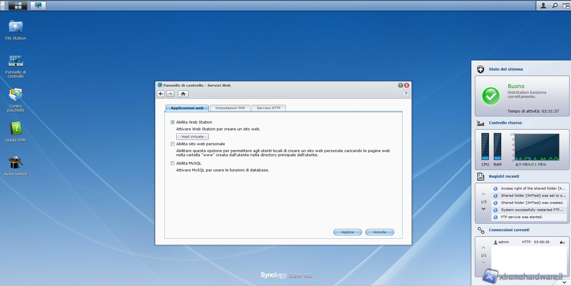 Il primo menù che incontriamo nei tra i servizi di rete son quelli legati alla Web Station.