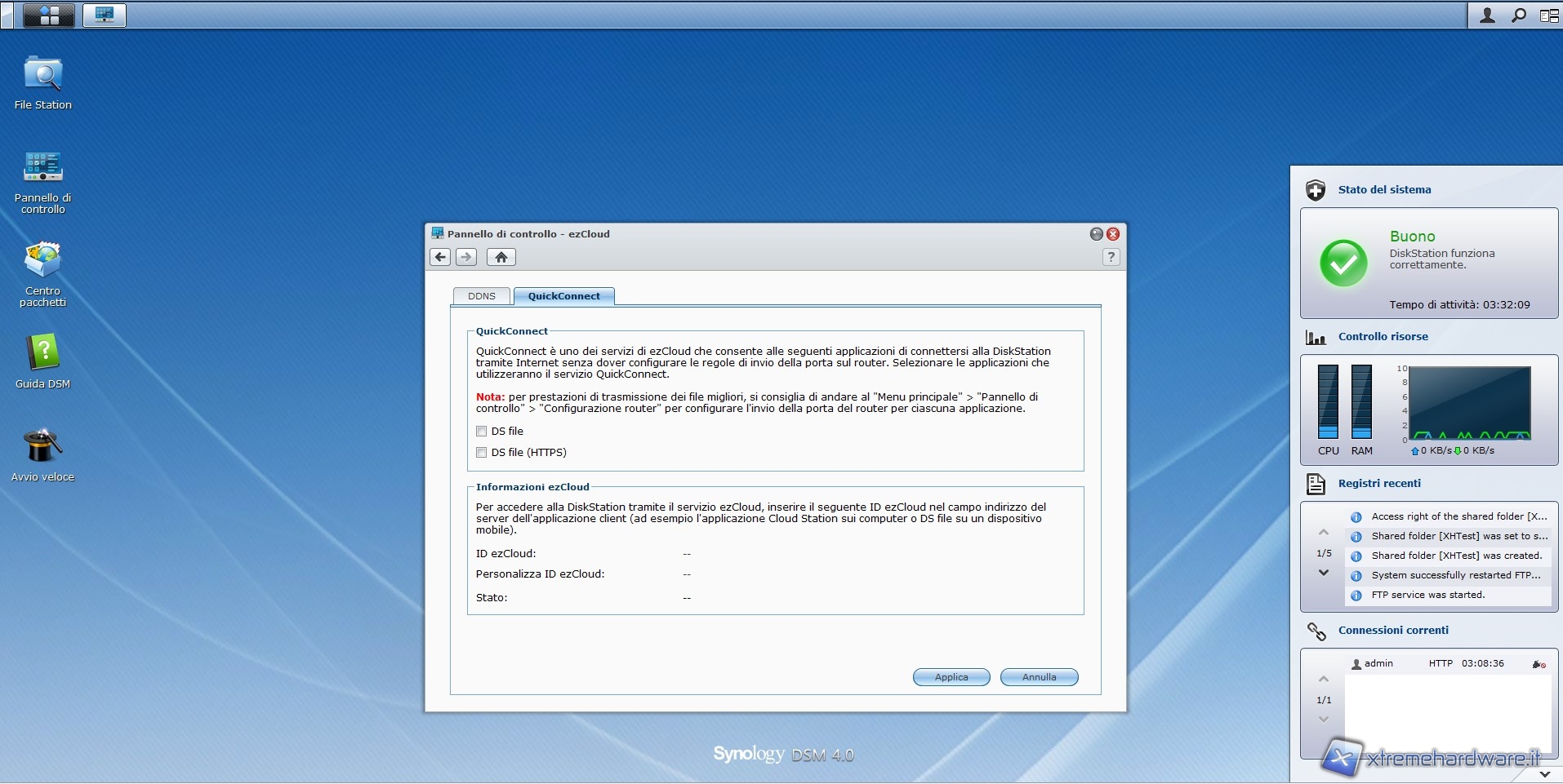 QuickConnect permette l’accesso automatico da parte di alcune applicazioni alla DiskStation tramite internet, senza dover agire sulle porte del router.