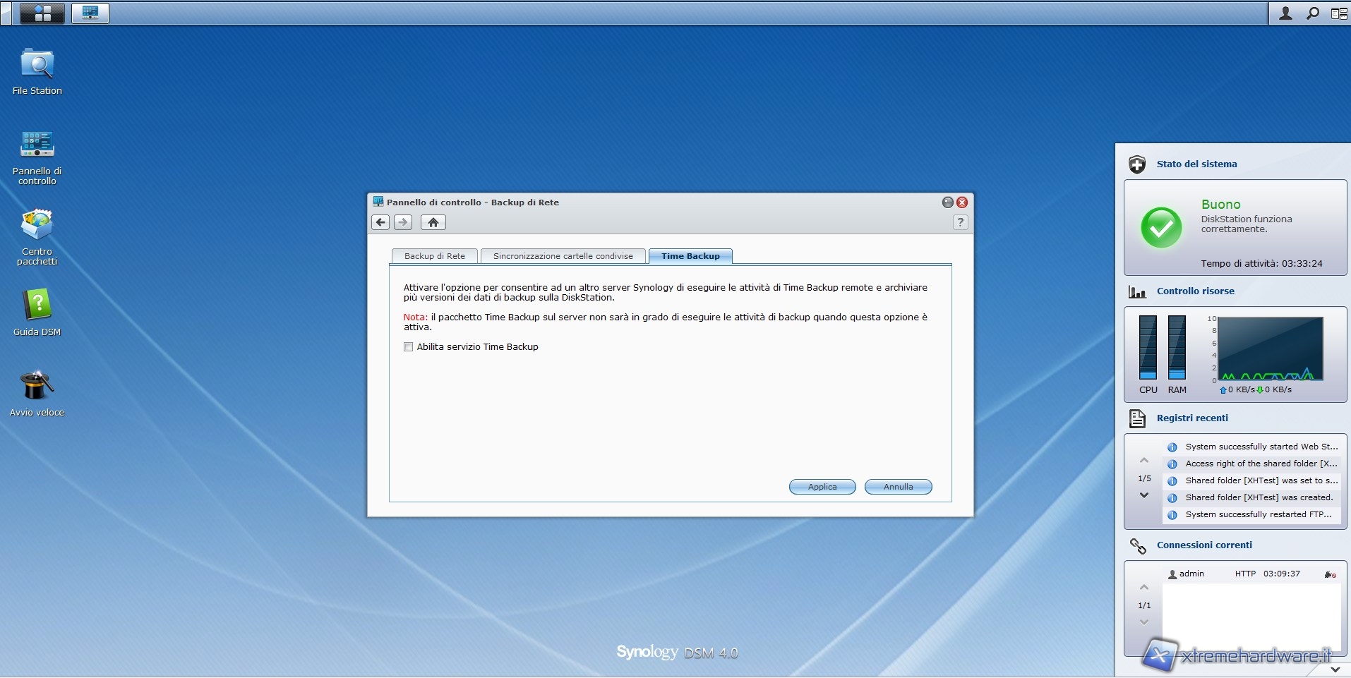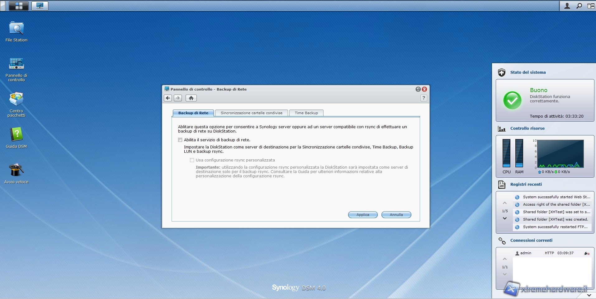 Abilitando il servizio backup di rete diamo la possibilità a qualsiasi altro Synology server di effettuare un backup sul nostro DS212j.
