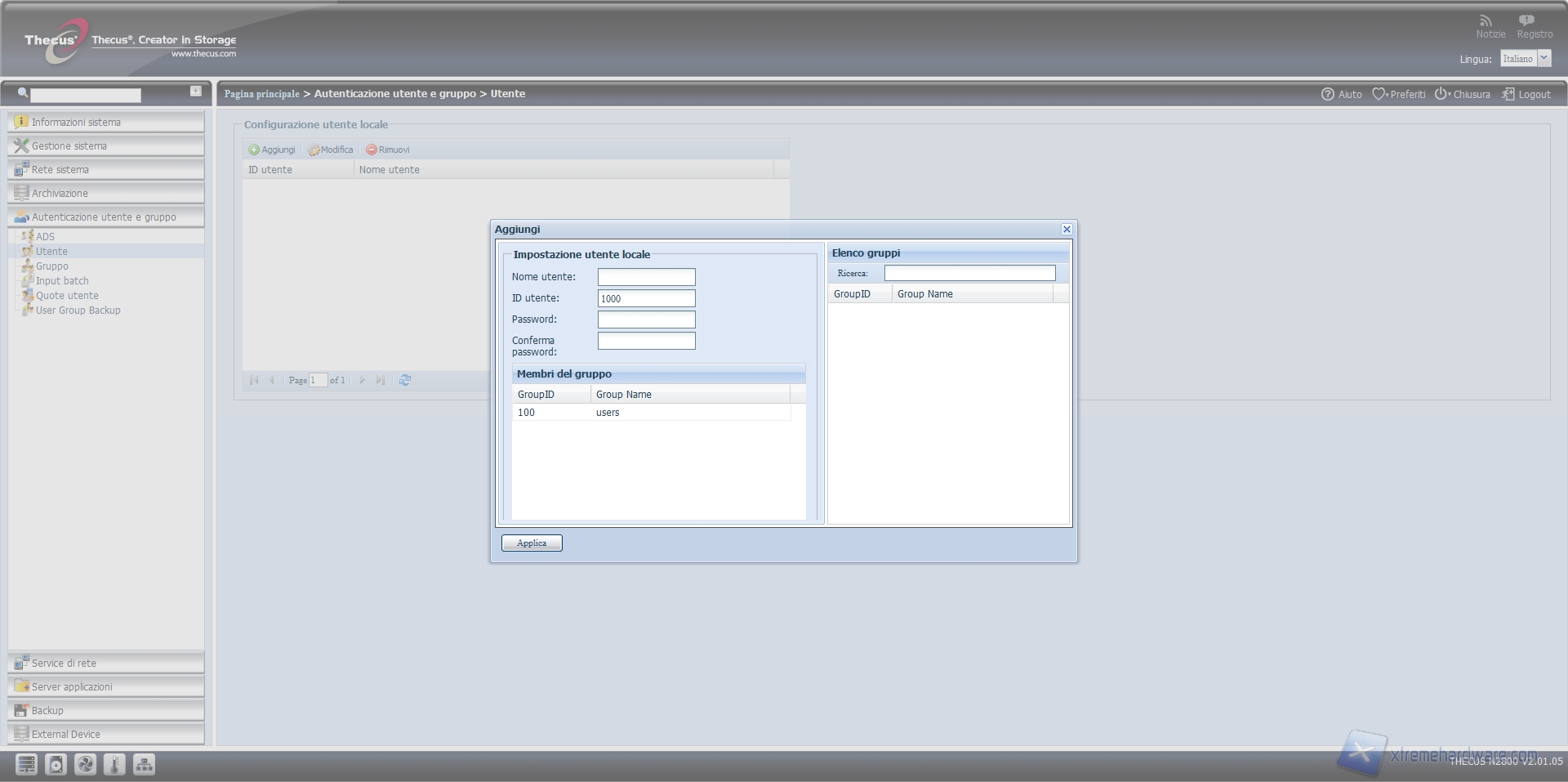 Ultima voce di questa macro-sezione è “User Group Backup”, funzione utile in quanto permette di salvare e cariare in un secondo momento tutte le impostazioni relative a utenti e gruppi.