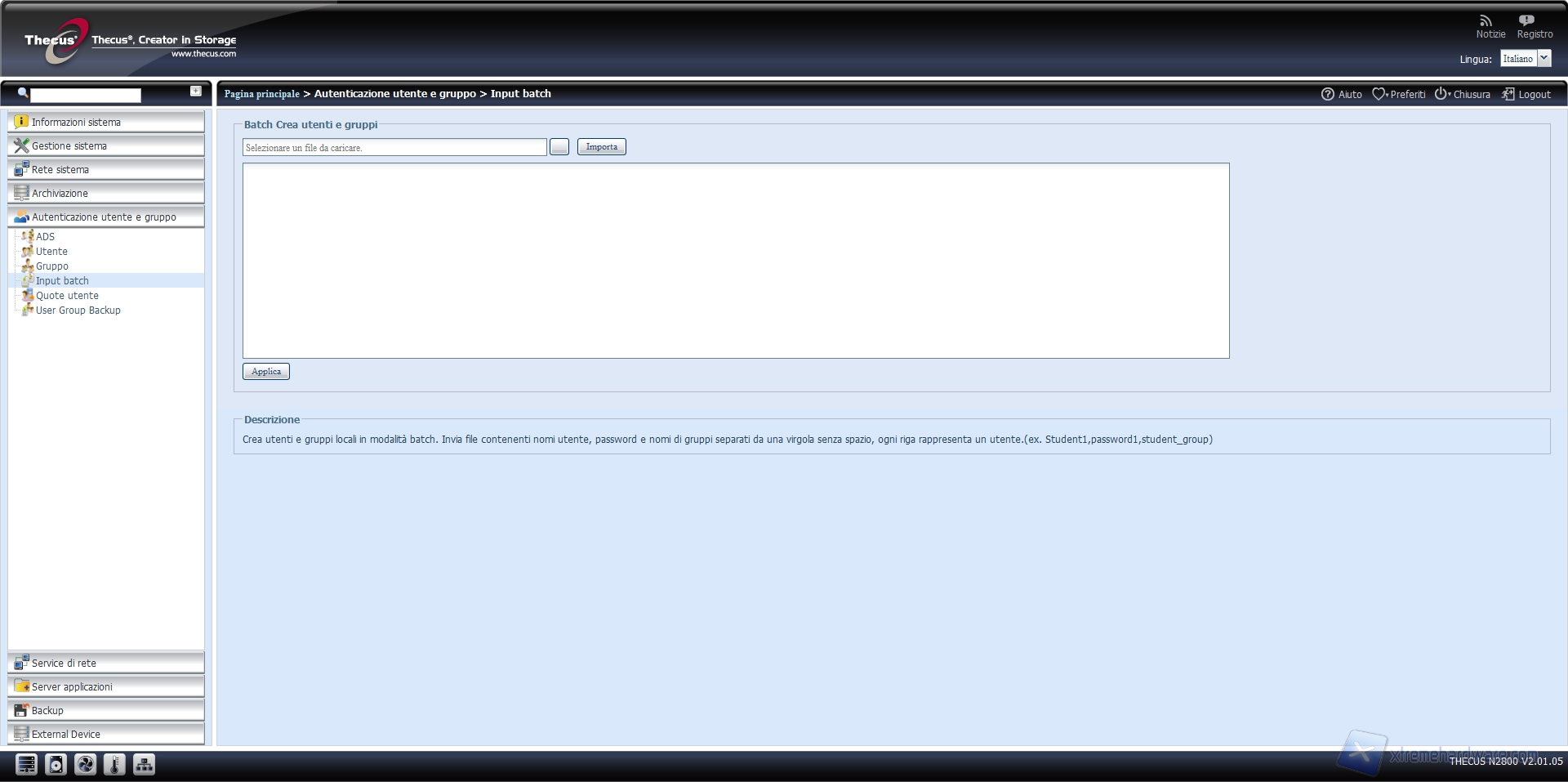 Consente, tramite l’importazione di gruppi e utenti tramite un file batch contenente l’elenco degli stessi.