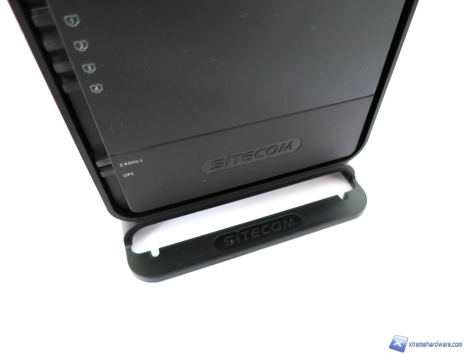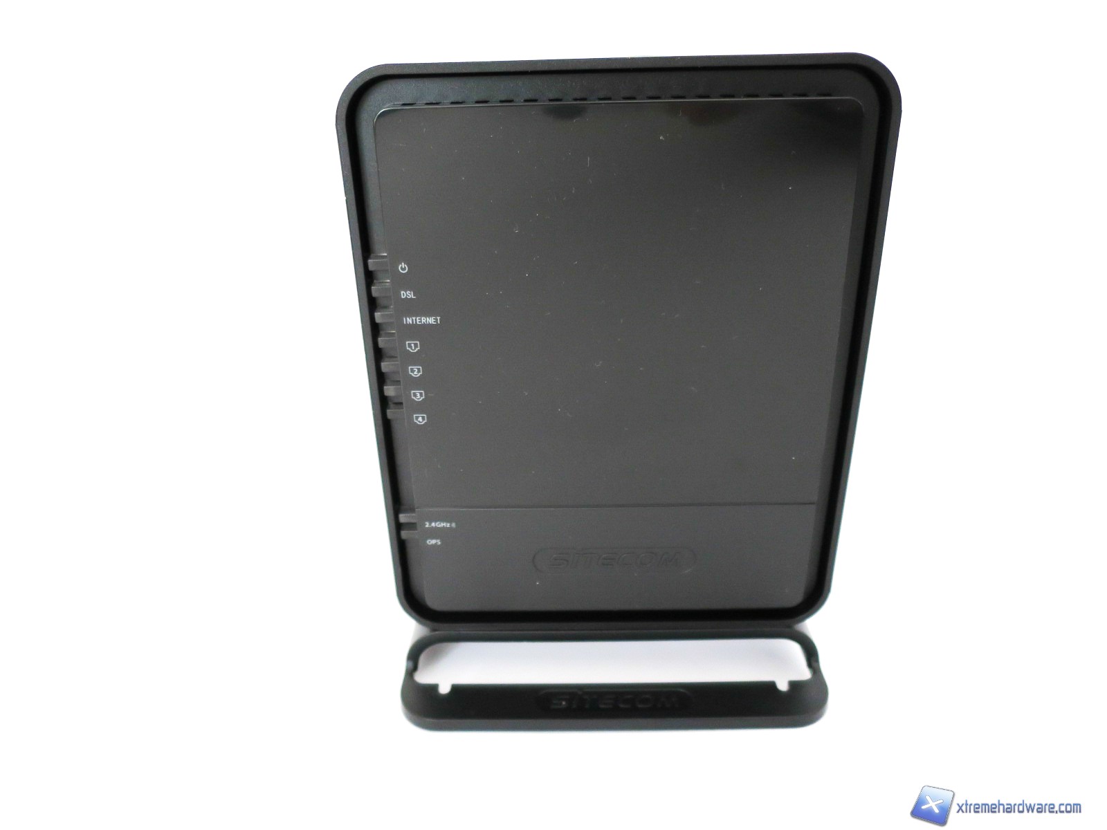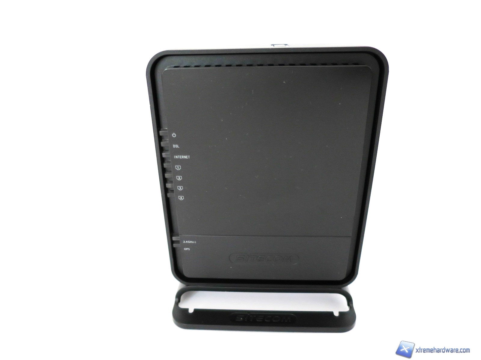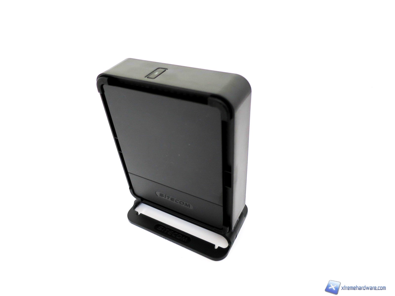 Come abbiamo visto nell’immagine del bundle, il Sitecom WLM-2600 è dotato di un piedistallo/supporto in plastica per permettere il posizionamento verticale del modem/router. Realizzato in plastica nera, dello stesso colore del modem/router, ha anch’esso riportati il logo del brand su ambo i lati. Le dimensioni del prodotto inserito sulla base risultano comunque compatte e non superano un’altezza complessiva di 16 centimetri, infatti, basti pensare alle dimensioni del solo modem/router che sono di 11 x 14 x 3,5 millimetri.