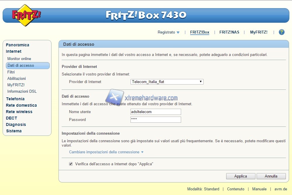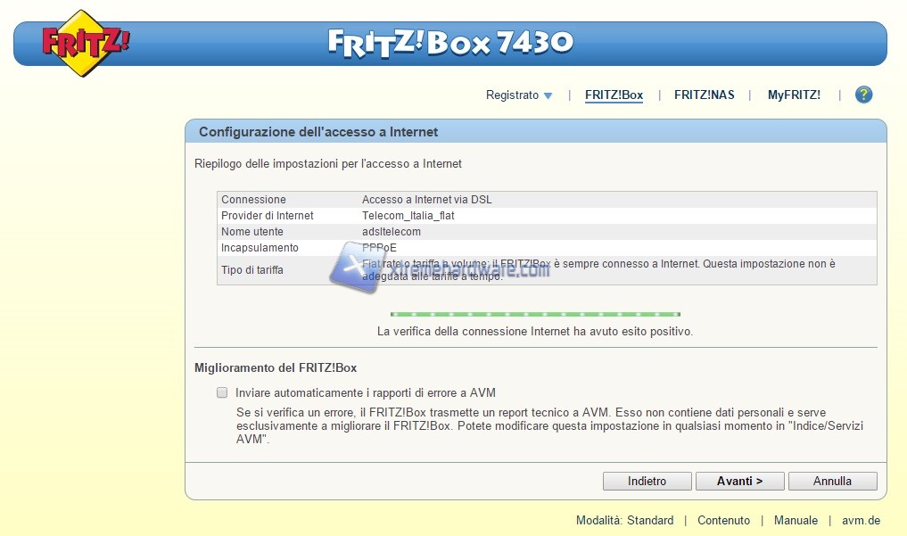 Bene, ora che avrete eseguito tutti i collegamenti, è il momento di collegarci all’indirizzo del pannello del FRITZ!Box 7430. In questo caso dal browser dovrete digitare l’indirizzo http://fritz.box e verrete rimandati alla pagina iniziale del Modem-Router. Nel caso in cui tramite questo indirizzo non dovreste riuscire a collegarvi al router, dovrete cercare l’indirizzo nelle proprietà della scheda di rete.