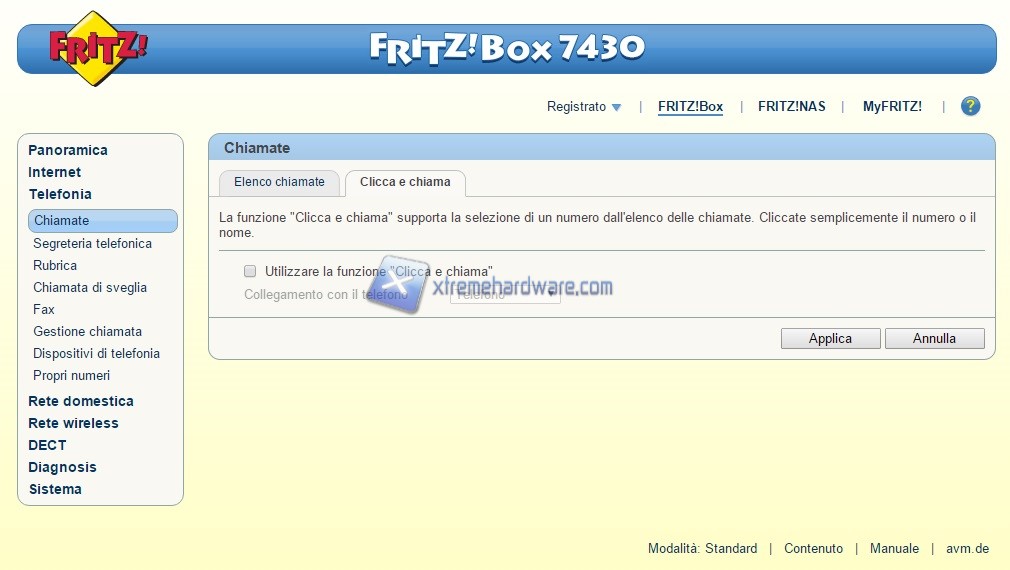 Passiamo ora al Menù ‘Telefonia’’ dal quale potremo accedere a diverse impostazioni anche avanzate per configurare il nostro telefono Voip o creare un sistema con segreteria telefonica ed avvisi di chiamata via mail. Funzioni che rendono il FRITZ!Box 7430 un tuttofare della nostra rete. Non manca una Rubrica telefonica, un servizio FAX o ancora il poter controllare quali dispositivi sono connessi.