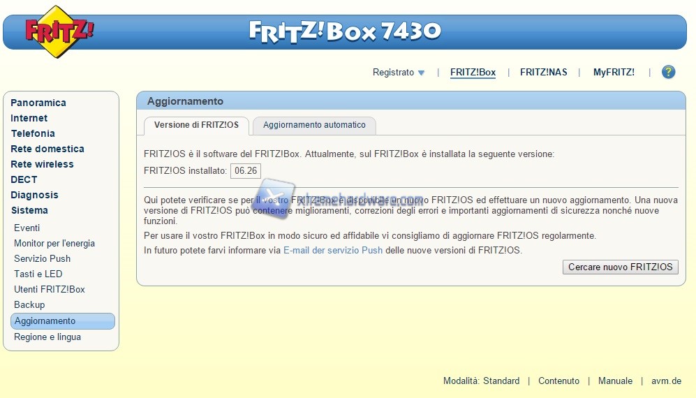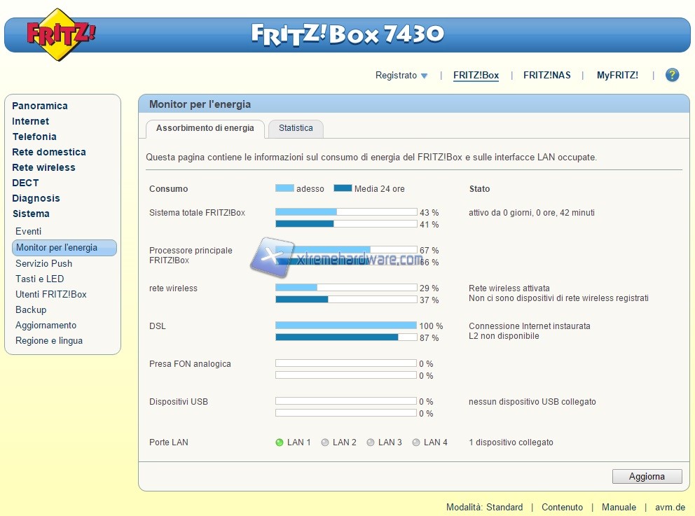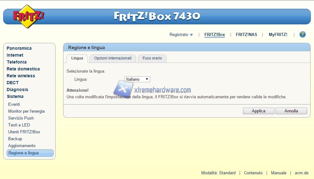 A riavvio completato, saremo finalmente nel pannello di gestione del FRITZ!Box 7430 e potremo agire su ogni singola impostazione offertaci dal cosiddetto FRITZ!OS.