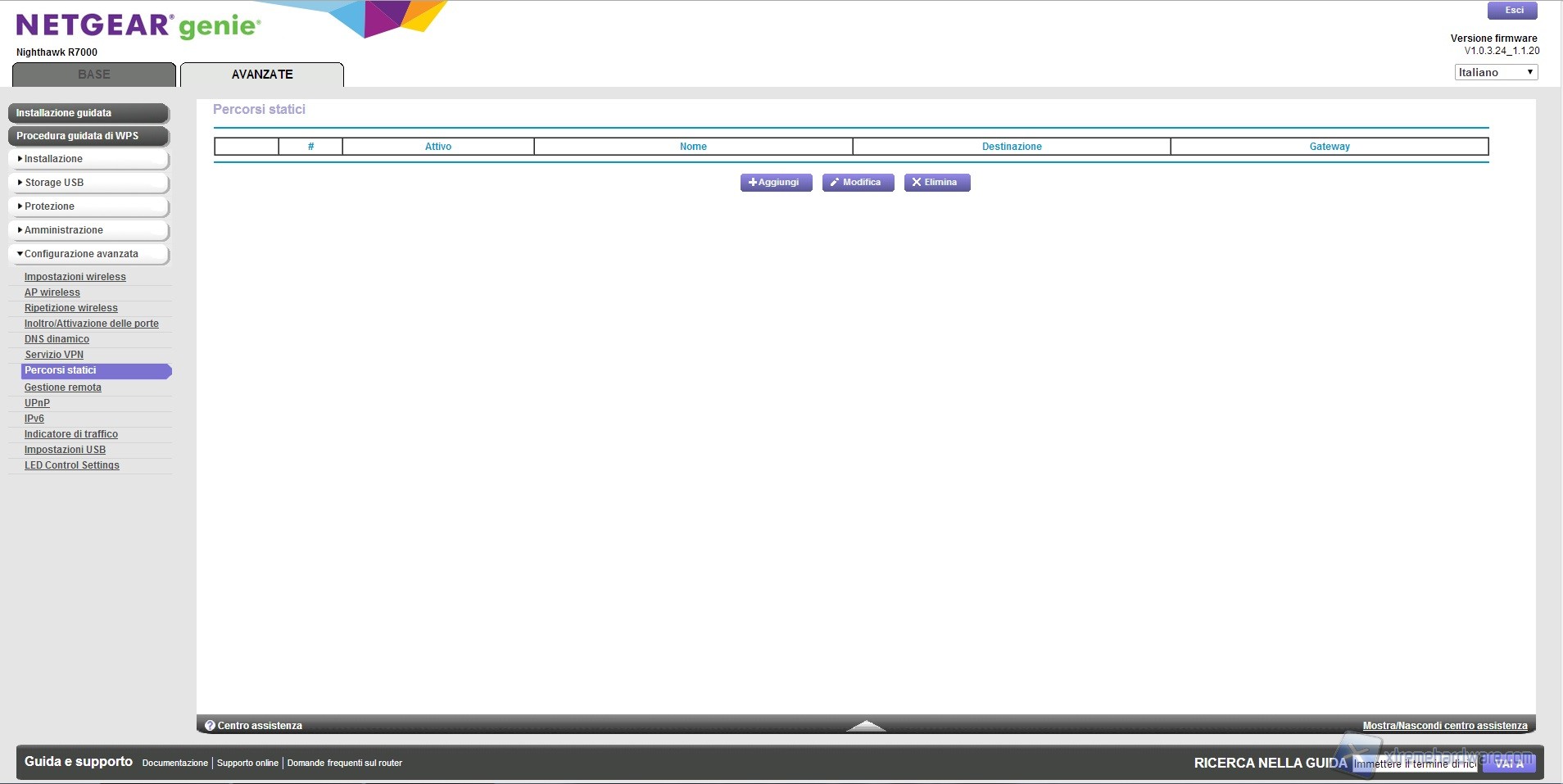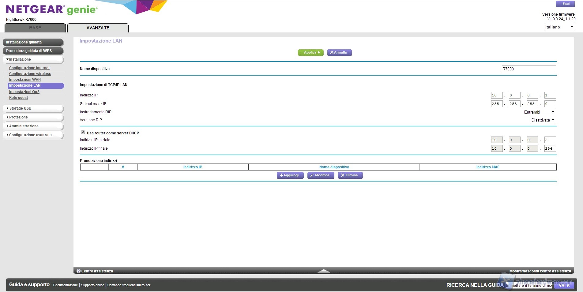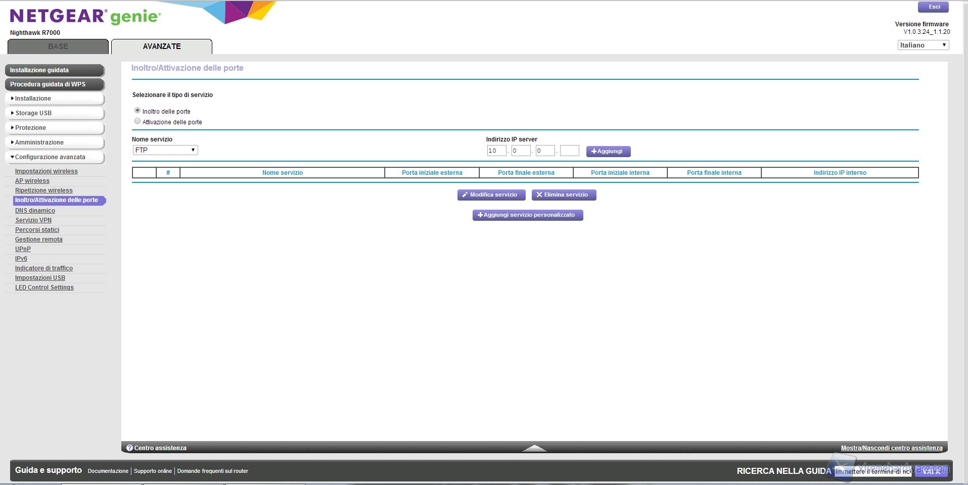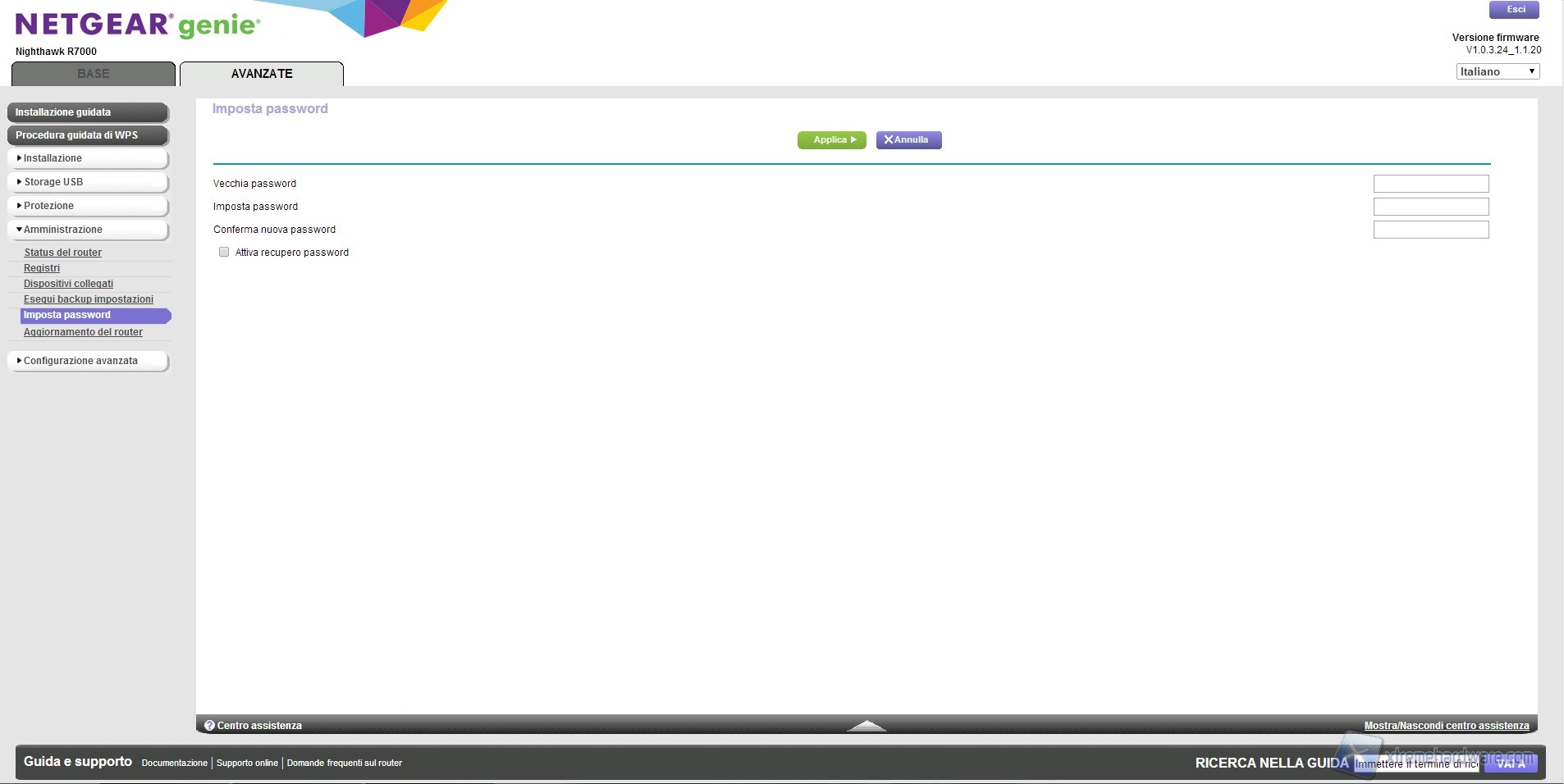 Nella parte sinistra del pannello di controllo troviamo le varie voci che ci permetteranno di settare ogni parametro e impostazione relativa al modem router. Come notiamo, abbiamo due Tab generali “Base” e “Avanzate”. Netgear ha voluto dividerle in base all’esperienza dell’utente. Avremo quindi modo se siamo esperti di personalizzare nel dettaglio le impostazioni del router e le sue regole di connessione tramite la tab “Avanzate”.