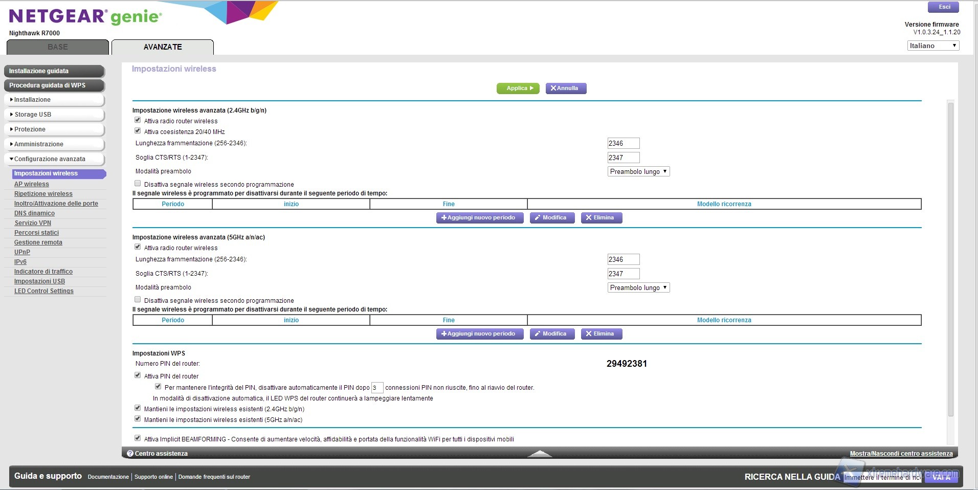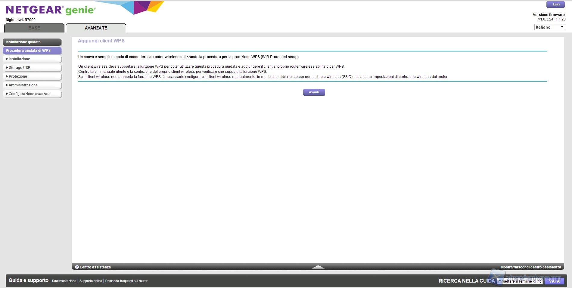 A seguire troviamo la tab “Procedura guidata WPS” che ci permetterà di eseguire una configurazione guidata e protetta dei client che vorremo collegare alla nostra rete.