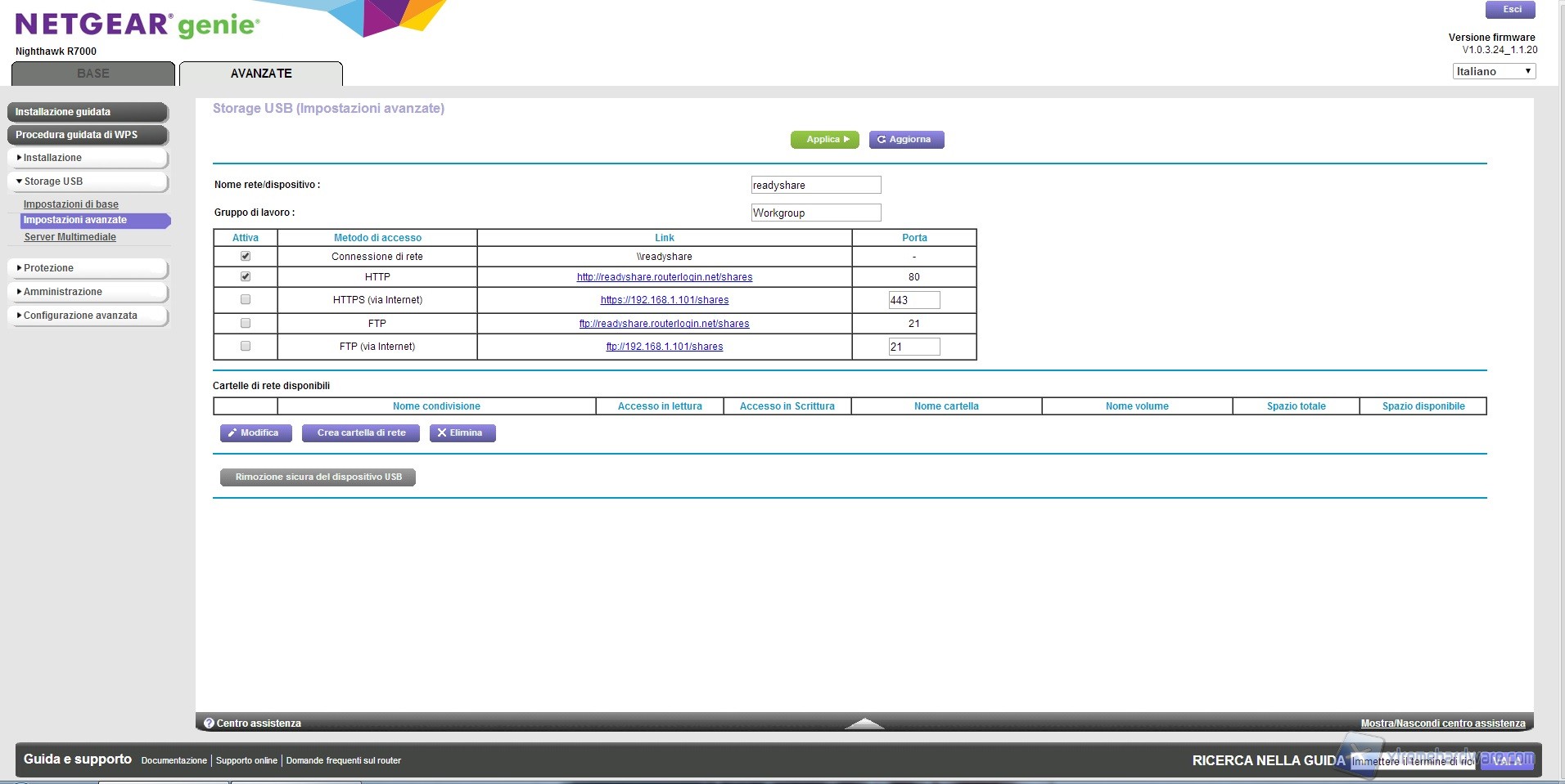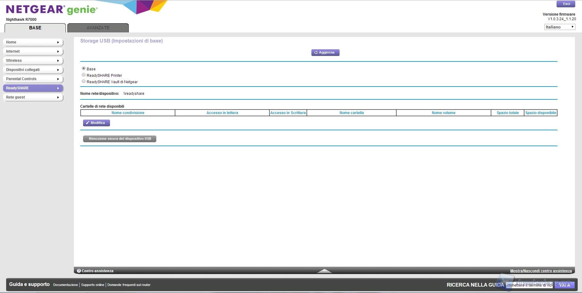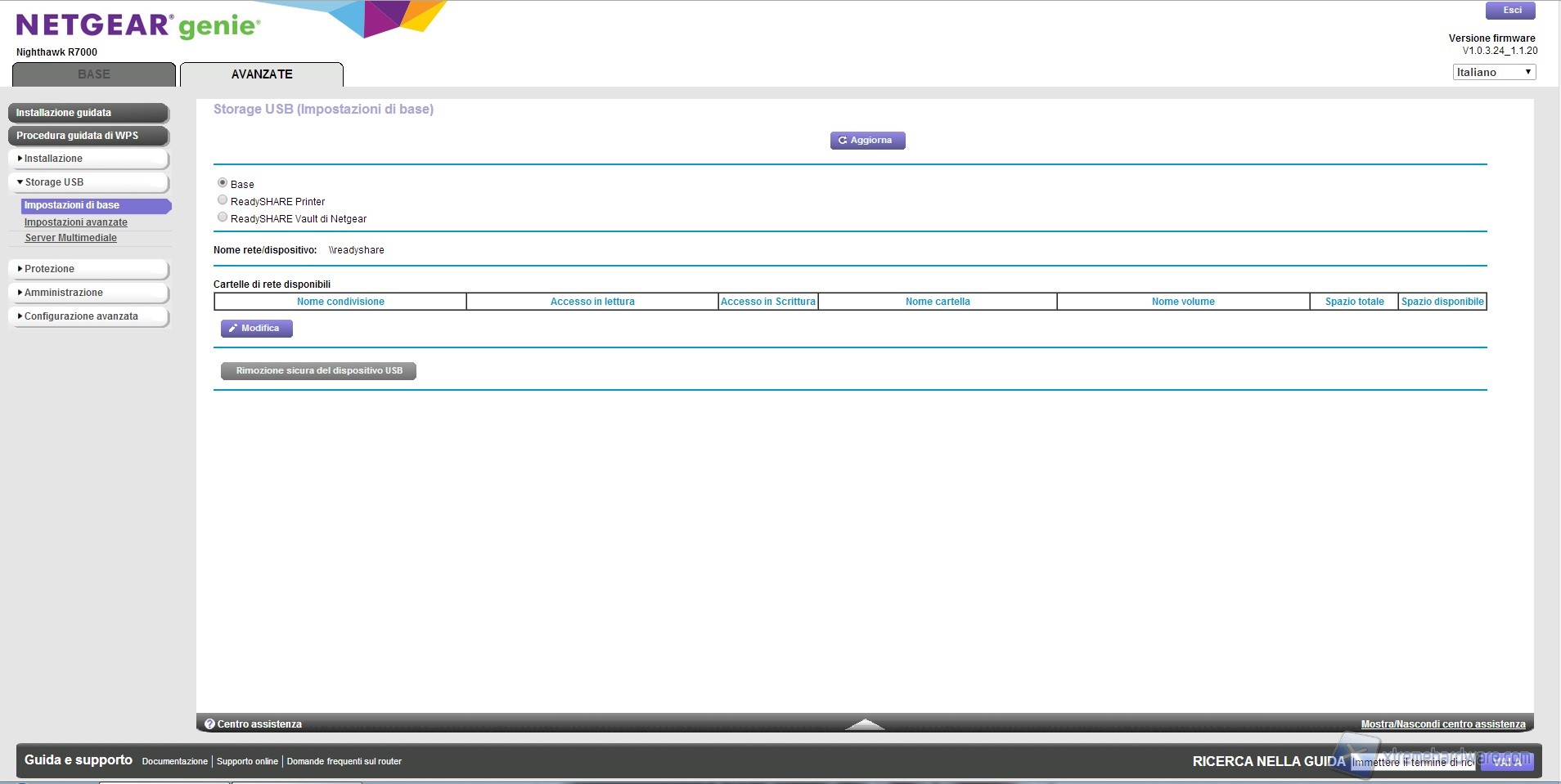 Non manca la funzionalità Ready Share che ci permetterà di condividere il contenuto dei dispositivi collegati alle porte USB presenti sul router (ricordiamo che sono disponibili una USB 3.0 ed una USB 2.0) in tutta la rete o ancora di collegare una stampante e condividerla all’interno della nostra rete per usufruirne nel momento adatto.