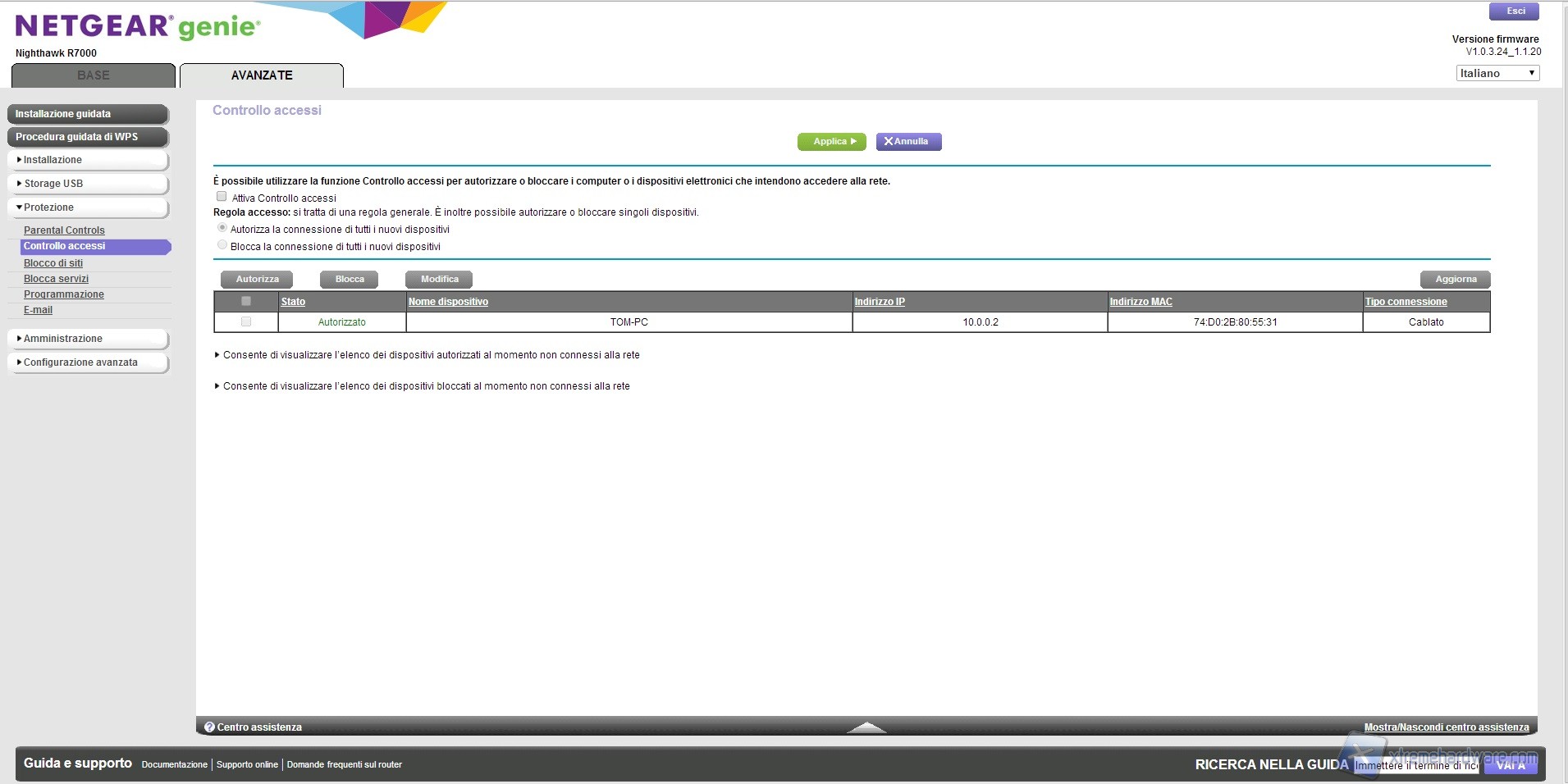 Il Netgear R7000 è dotato anche di un filtro Parental Control per monitorare e nel caso limitare l’accesso ad Internet da parte dei nostri figli.