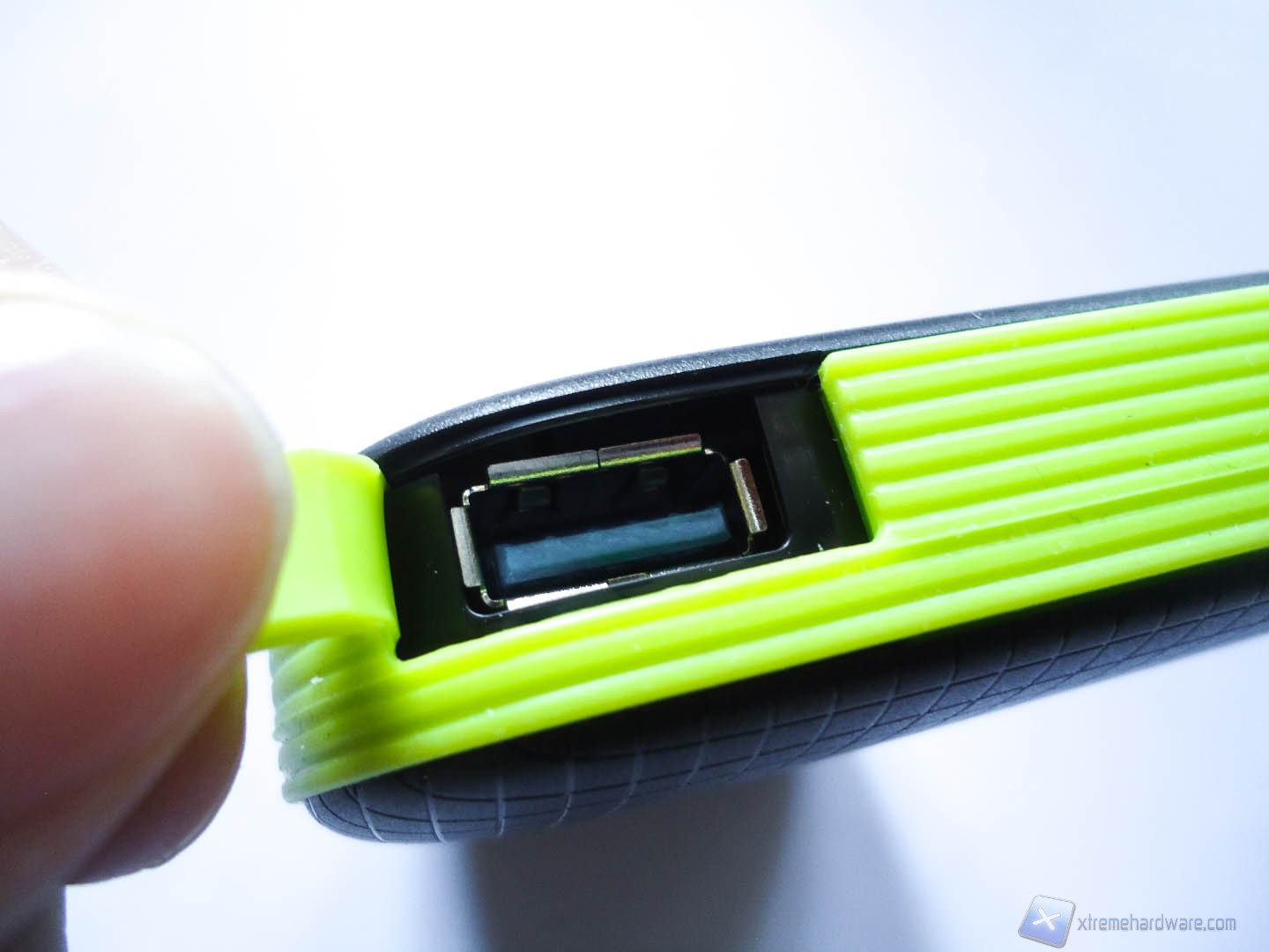 I lati sono completamente in gomma e hanno una particolare guida per inserire il cavo USB in modo da portarlo con noi senza problemi. L’ingresso USB 3.0 è in questo caso in formato standard e non mini come per la maggior parte degli HD esterni ed inoltre è protetto da un coperchio in gomma per impedire che vi entri acqua e polvere.