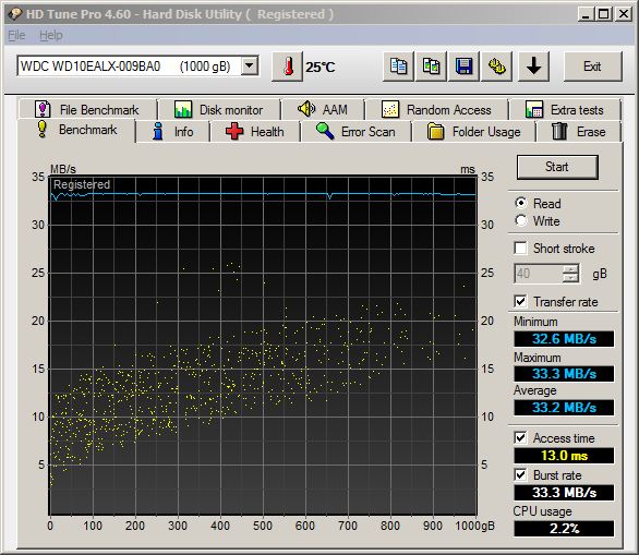 Per il WD10EALX abbiamo effettuato sia test in scrittura sia in lettura, per il WD1600BEVS invece ci siamo limitati ad effettuare solo quelli in lettura in quanto il disco era partizionato. Il programma utilizzato è HDtune in quanto permette facilmente di effettuare i test sugli hard disk anche quando questi sono collegati tramite USB.