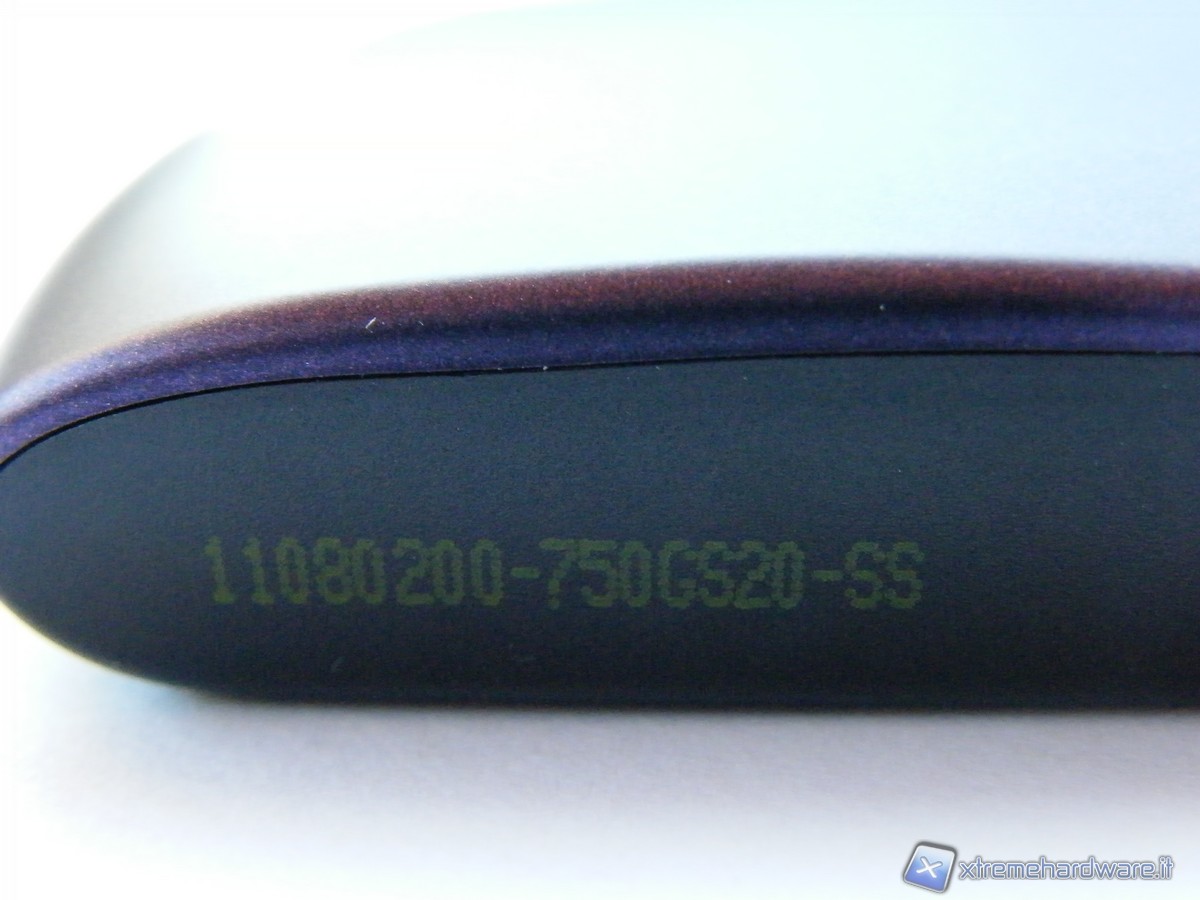 Su di un lato della periferica è presente la porta USB di terza generazione che ci permette di collegare l'S20 a qualsiasi dispositivo dotato di collegamento USB. Ricordiamo che il nuovo standard USB 3.0 è retro compatibile fino alle USB 2.0, ovviamente con le dovute limitazioni di ampiezza di band-width. Sull'altro lato troviamo i numeri di serie relativi al nostro prodotto.