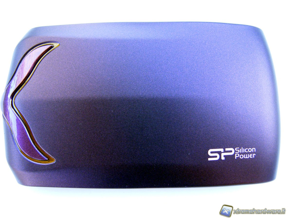 Tolto dalla sua confezione, la prima cosa che ci colpisce del prodotto è la sua estetica, assolutamente originale. Ciò è evidente prima di tutto nella forma dell'involucro esterno: non si tratta assolutamente della comune forma della maggior parte degli hard disk esterni, ma siamo di fronte ad una forma che sembra filante come quella di una supercar. Questo non è un caso: la forma dello chassis è stata pensata proprio prendendo inspirazione dalla bassa resistenza aerodinamica di un'automobile sportiva. Questo non basta per stupire, perché anche il colore, tra il fucsia ed il violetto metallico, lo distingue nettamente da altri prodotti simili. Bisogna sottolineare anche come questa colorazione sia stata effettuata tramite un trattamento particolare che, oltre a questo eccezionale effetto estetico, impedisce che si possano lasciare impronte delle dita sulla superficie del prodotto, mantenendo il loro originale aspetto satinato.