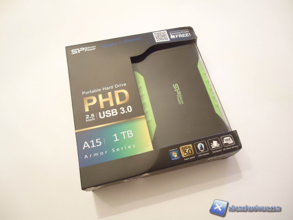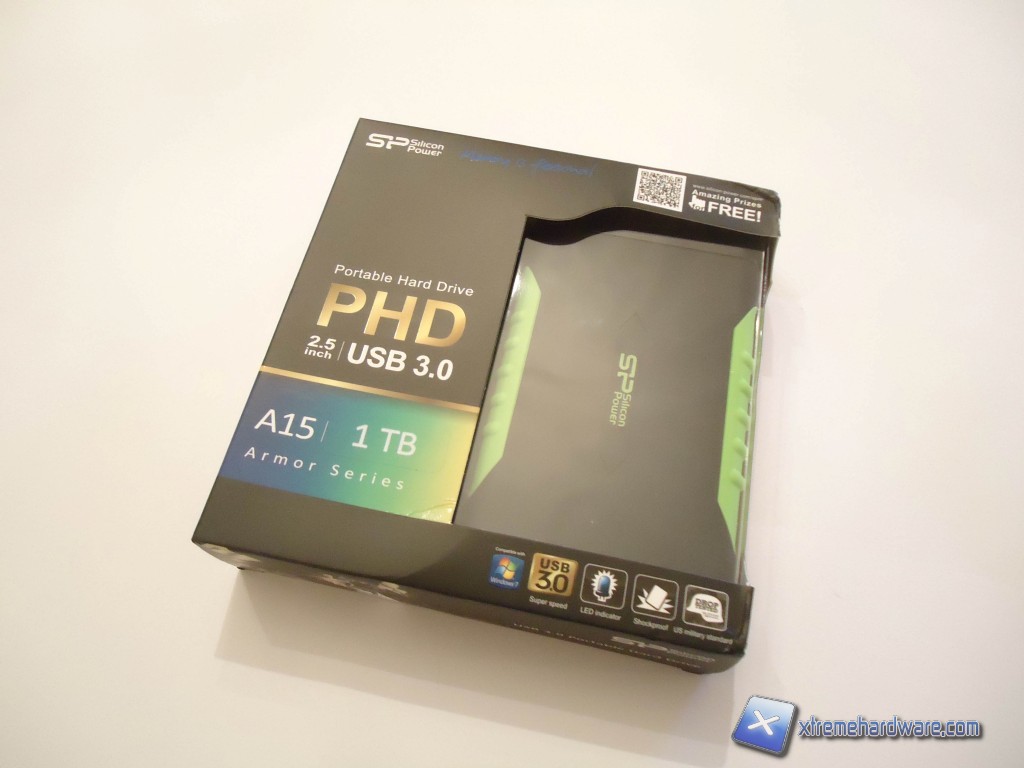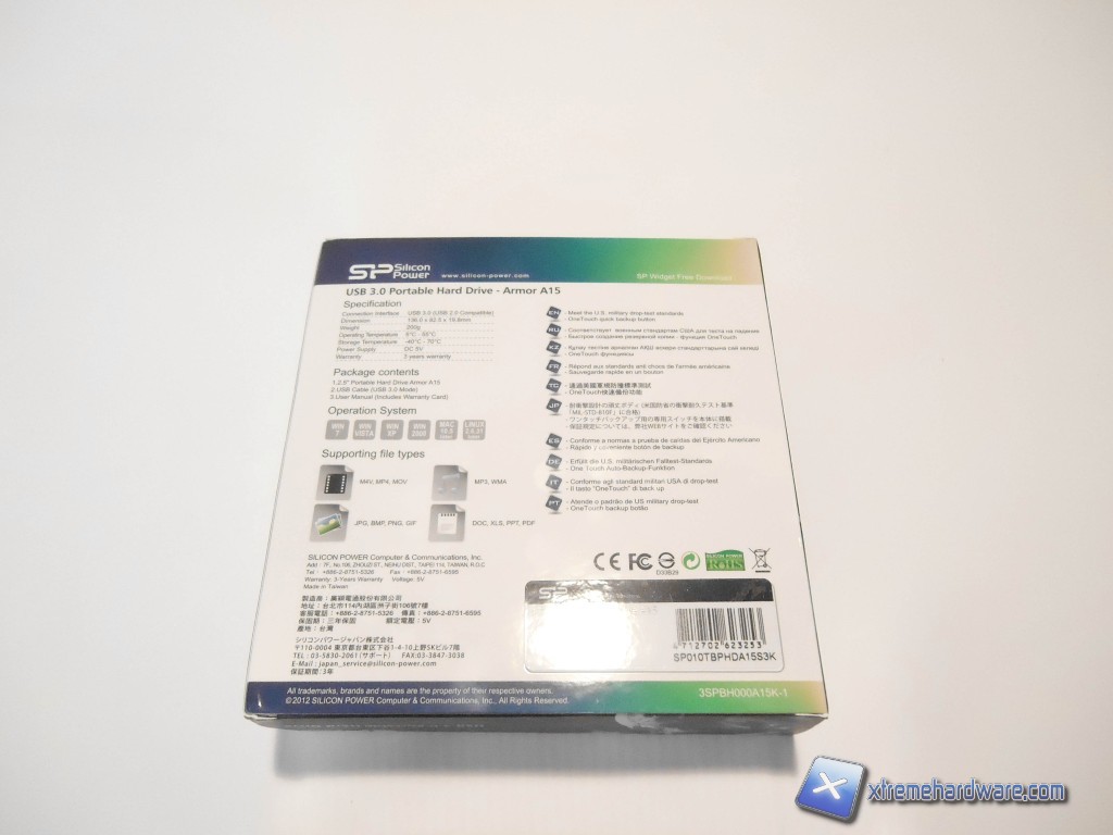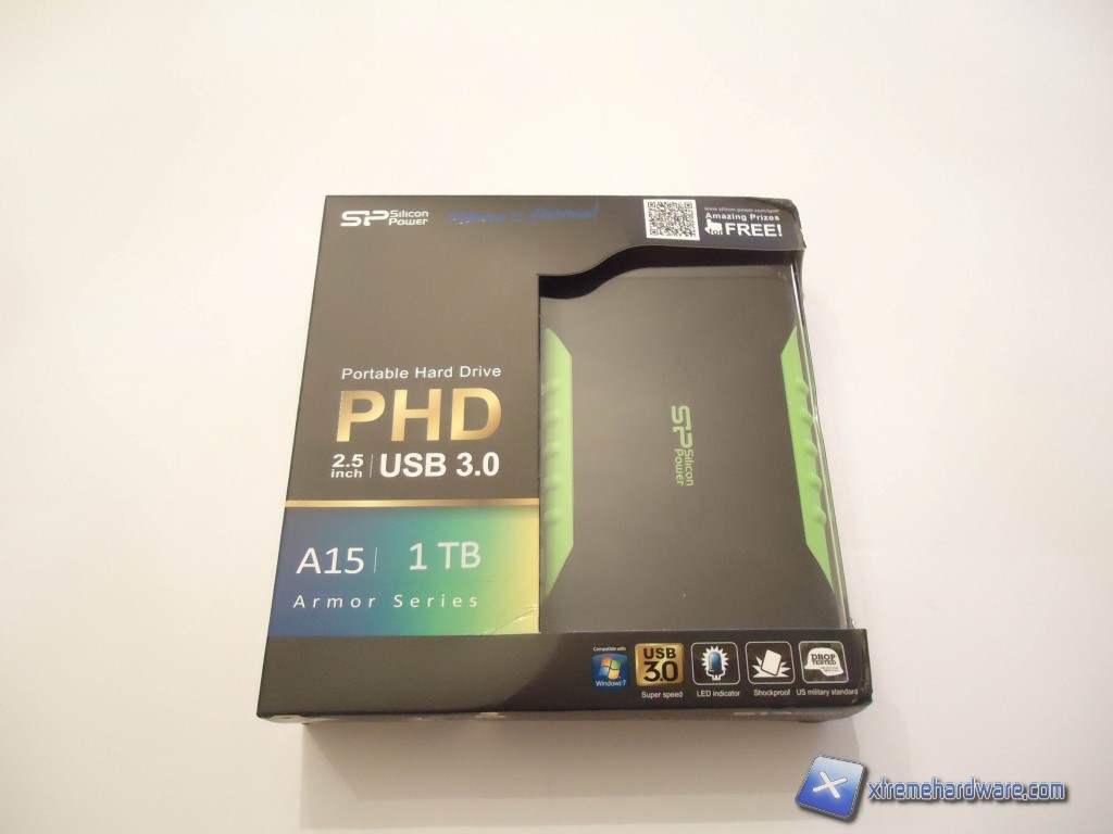 L’Armor A15 si presenta in una confezione davvero bella e colorata, sullo sfondo nero sono riportate varie diciture riguardo le caratteristiche dell’Hard Disk.
