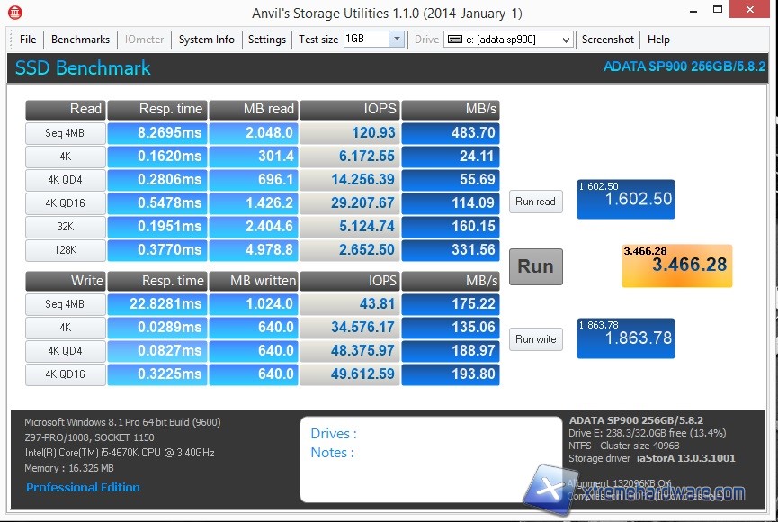 A seguire i grafici con i valori ottenuti dall'ADATA SP900 da 256GB.