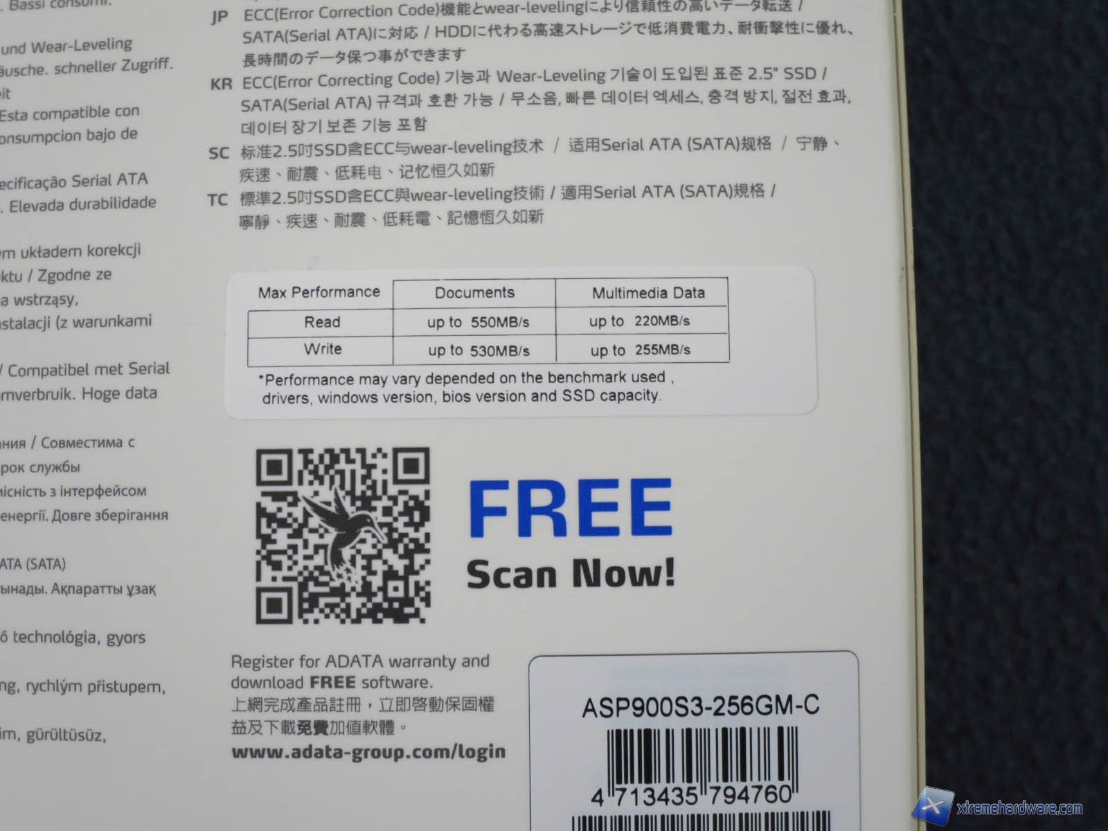 La confezione dell’ADATA Premier Pro SP900 da 256GB è un blister di plastica contenuto in un involucro di cartone bianco su cui sono riportate le informazioni classiche quali il modello, il logo del brand ed altre informazioni. Abbiamo per tale confezione anche una comoda apertura trasparente che ci permetterà di osservare il prodotto contenuto.