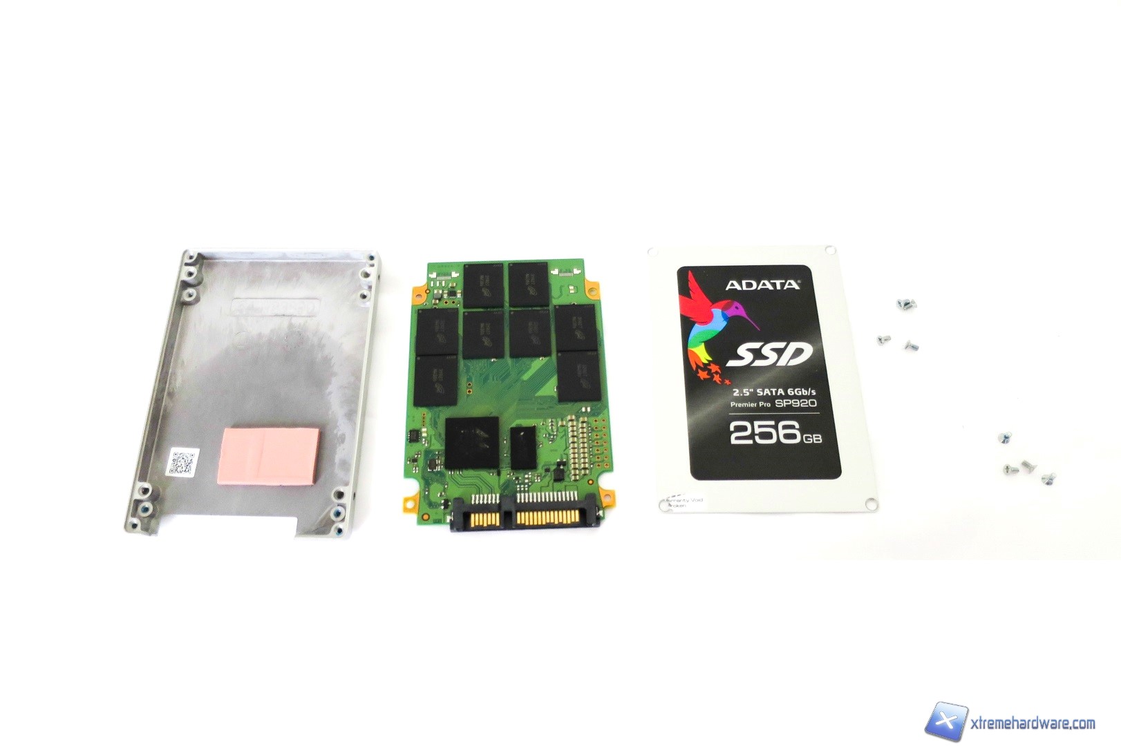 Per accedere dunque all’interno dell’ADATA SP920 dovremo innanzitutto rimuovere il sigillo in plastica presente sulla vite in basso a sinistra, passare dunque alla rimozione delle quattro viti poste due per lato (superiore ed inferiore) e quindi avere accesso finalmente al controller dell’SSD.